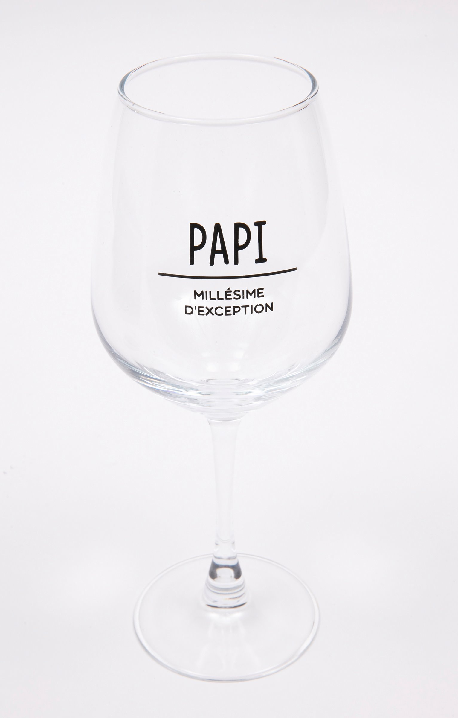 Coffret cadeau vin humoristique, collection spéciale Noël. Comprend un verre à vin et un sous-verre. Message « Papi millésime d'exception » sur le verre. Imprimé verres qui se cognent et message « Ici on verse du bonheur » sur le sous-verre. En verre et en bois. Vendu dans un coffret cadeau avec poignée, orné de motifs boules de Noël et offrant la possibilité d'inscrire le nom du destinataire.