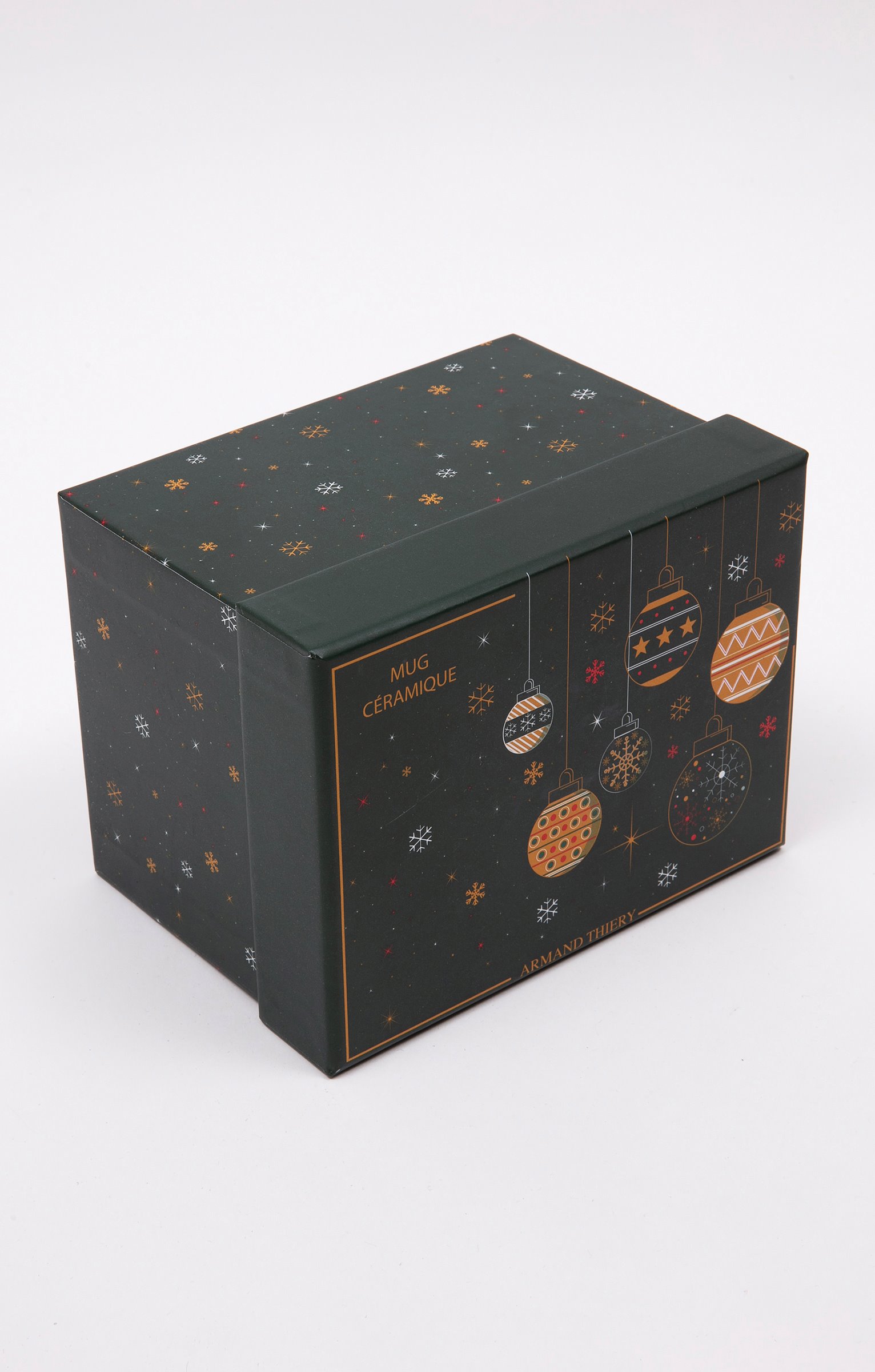 Mug à message en céramique. Collection d'idées cadeaux de Noël. Message «Frangine d'amour» à l'extérieur et «Sœurette pour toujours» à l'intérieur. Motif cœur sous le message à l'extérieur. Avec anse. En céramique. Vendu en coffret cadeau, prêt à offrir. Étiquette nominative à remplir sur le côté de la boîte.