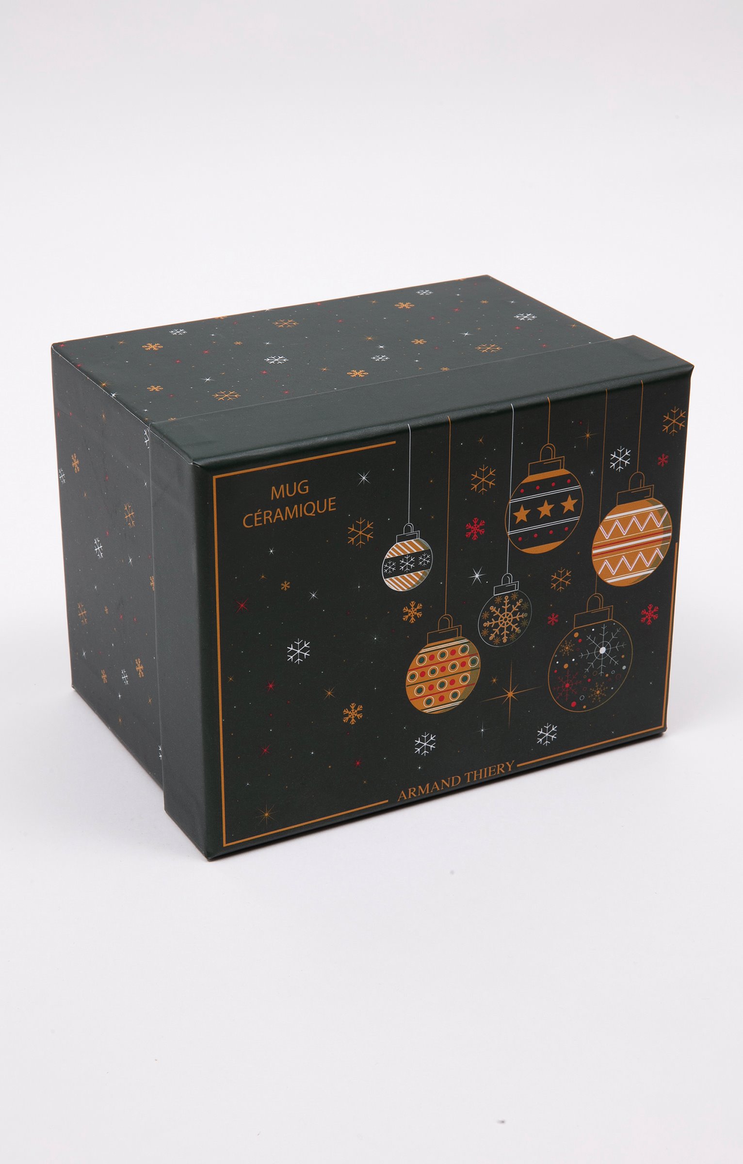 Mug à message en céramique. Collection d'idées cadeaux de Noël. Tasse haute avec anse. Message «?Parrain adoré?!?» avec cœur dans des coloris assortis. Base en teinte contrastée. En céramique. Vendu en coffret cadeau, prêt à offrir. Étiquette nominative à remplir sur le côté de la boîte.