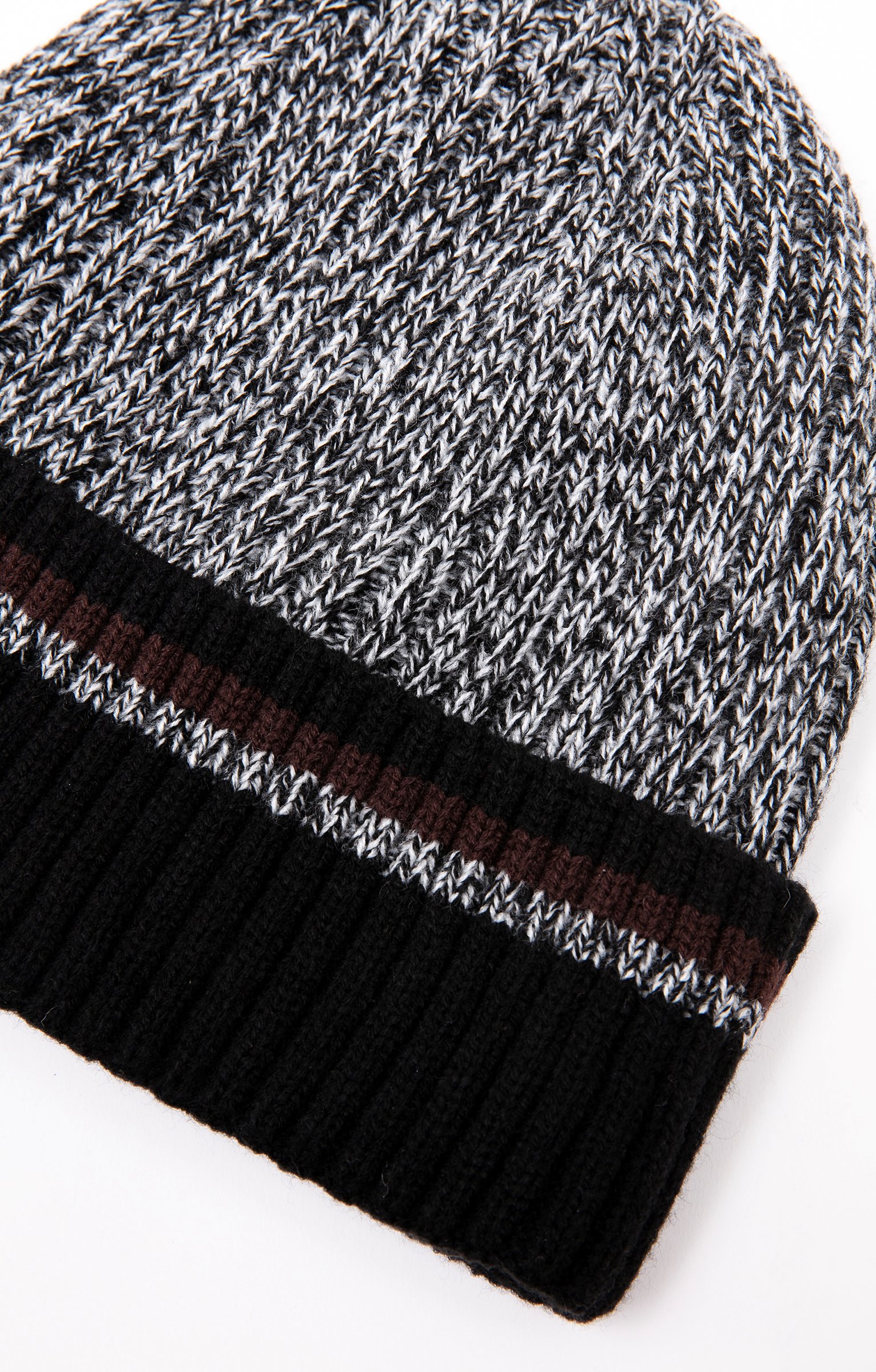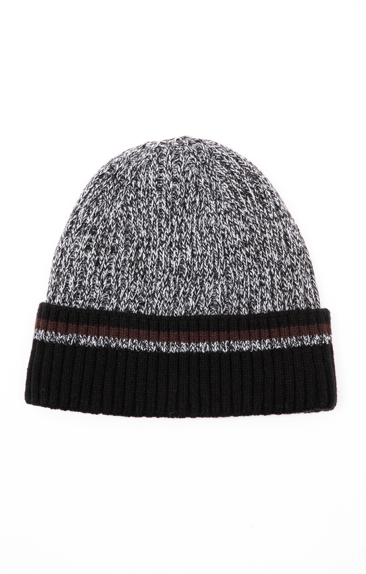 Protégez-vous du froid tout en affichant un style décontracté moderne grâce à ce bonnet. Bonnet en maille moulinée avec détails rayés. Forme classique. Maille moulinée bicolore pour la partie principale. Revers avec large bord uni et rayures tricolores dans la partie supérieure. Doublure intérieure fourrée douce et chaude.