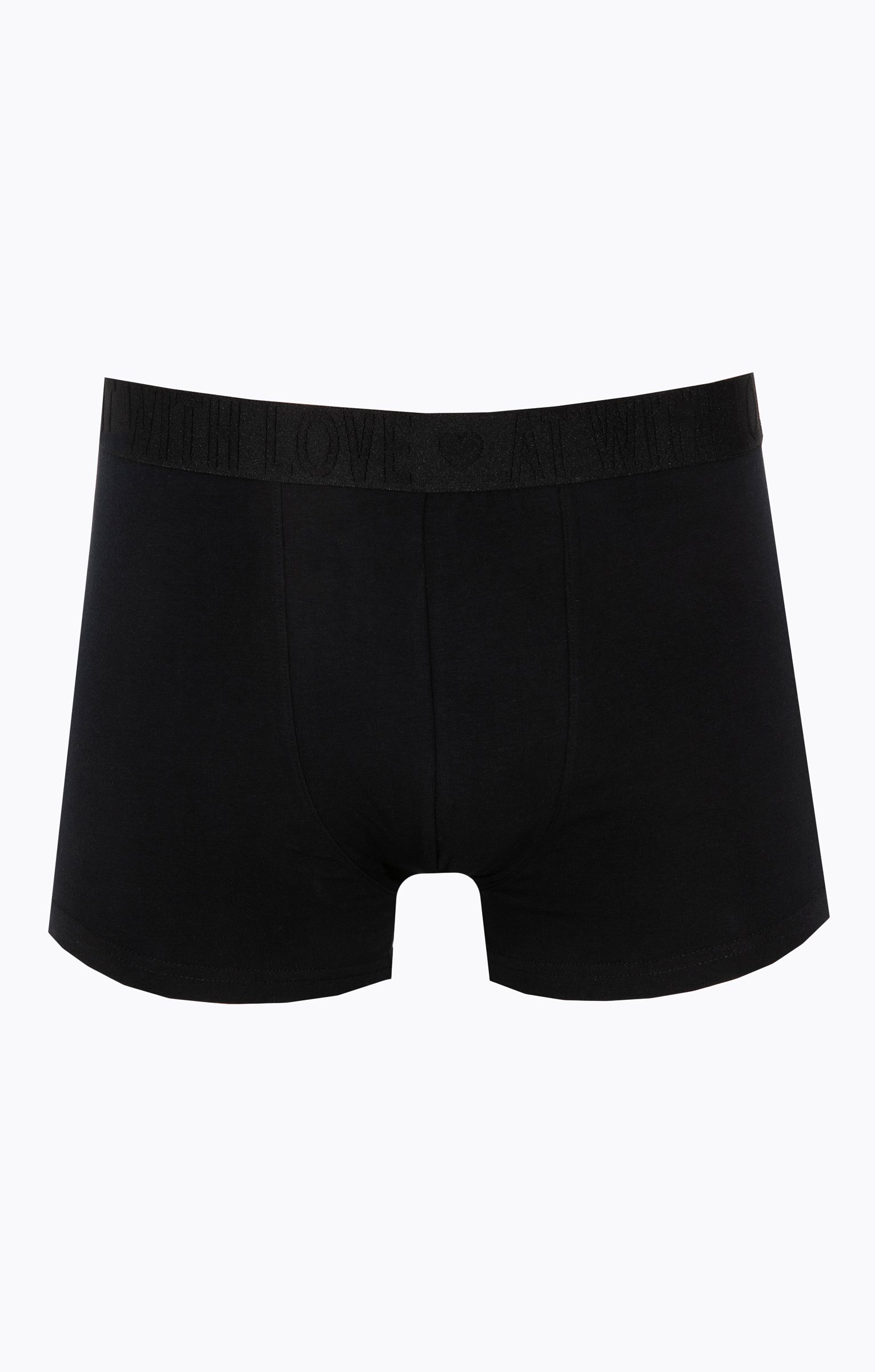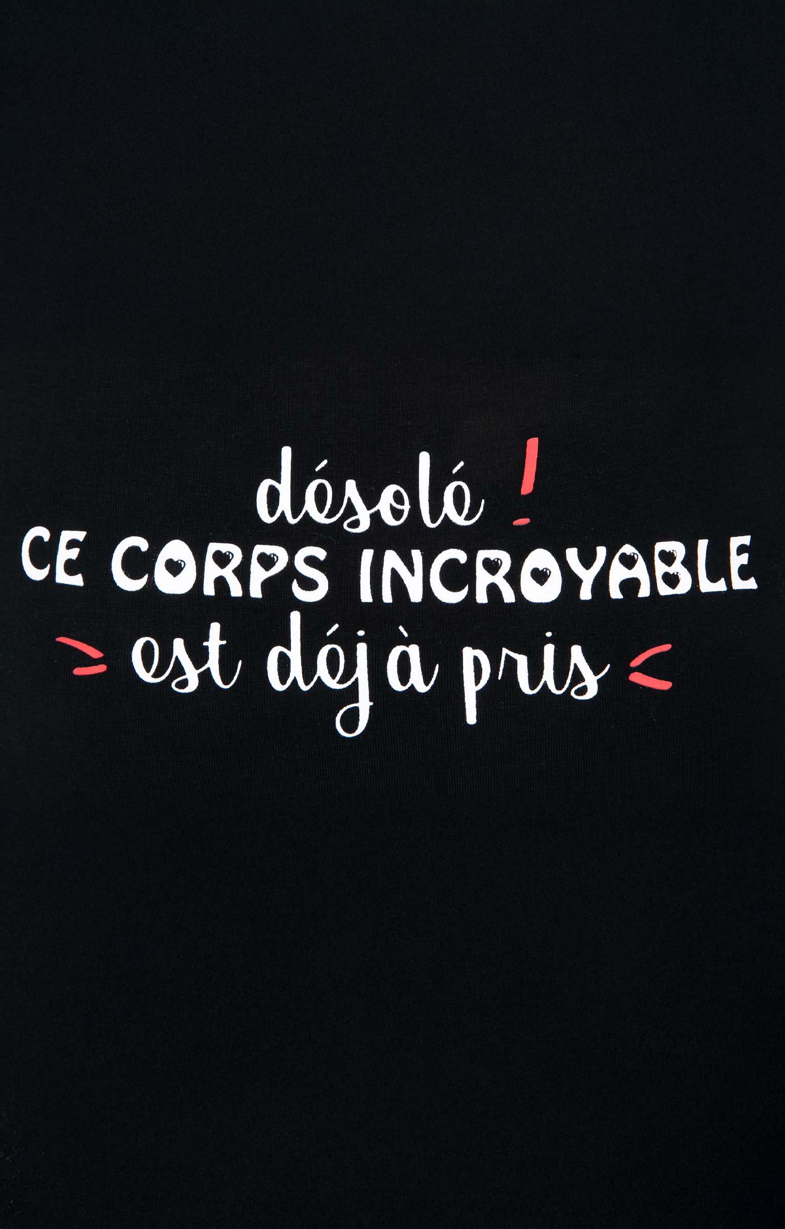 Boxer noir humoristique collection spéciale cadeaux de Saint-Valentin. Message « Désolé ce corps incroyable est déjà pris » au dos. Devant uni. Matière extensible. Taille plate élastiquée ton sur ton avec inscriptions sur le thème de la Saint-Valentin.