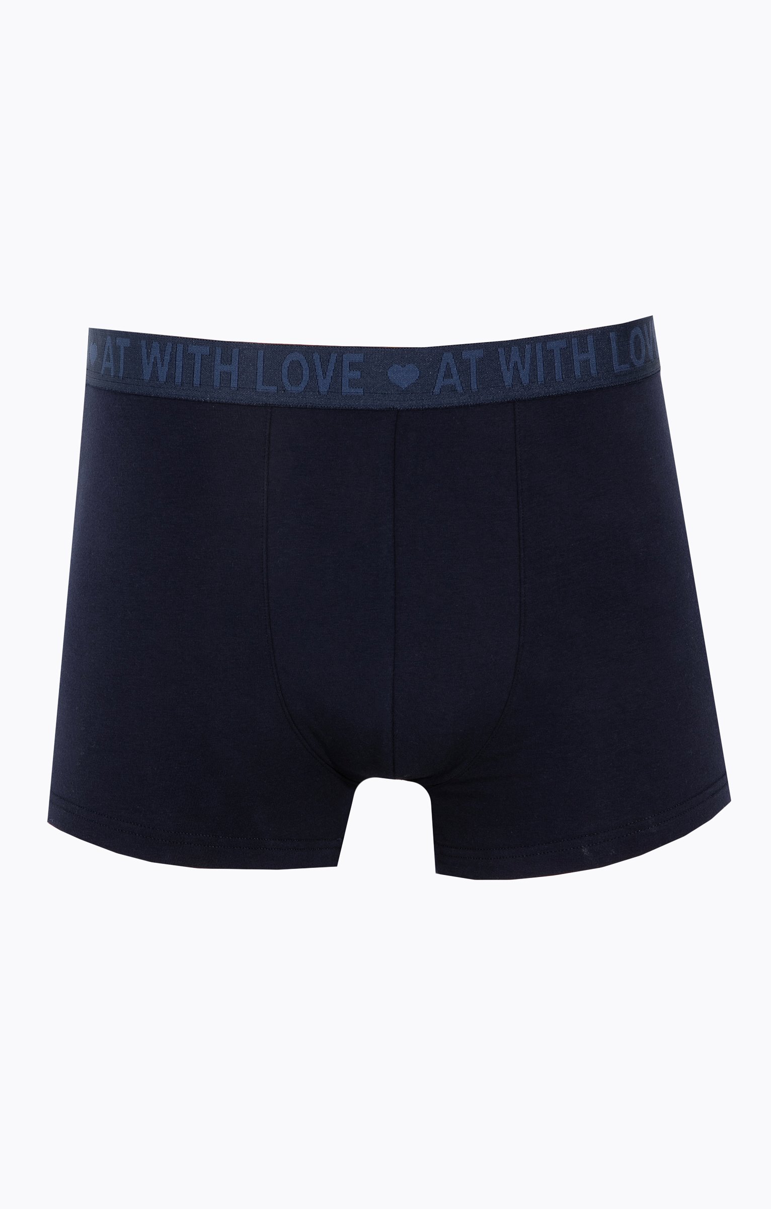 Boxer bleu marine humoristique collection spéciale cadeaux de Saint-Valentin. Message « Sculpté par les dieux déshabillé par une déesse » au dos. Motifs nuages entourant le message. Devant uni. Matière extensible. Taille plate élastiquée ton sur ton avec inscriptions sur le thème de la Saint-Valentin.