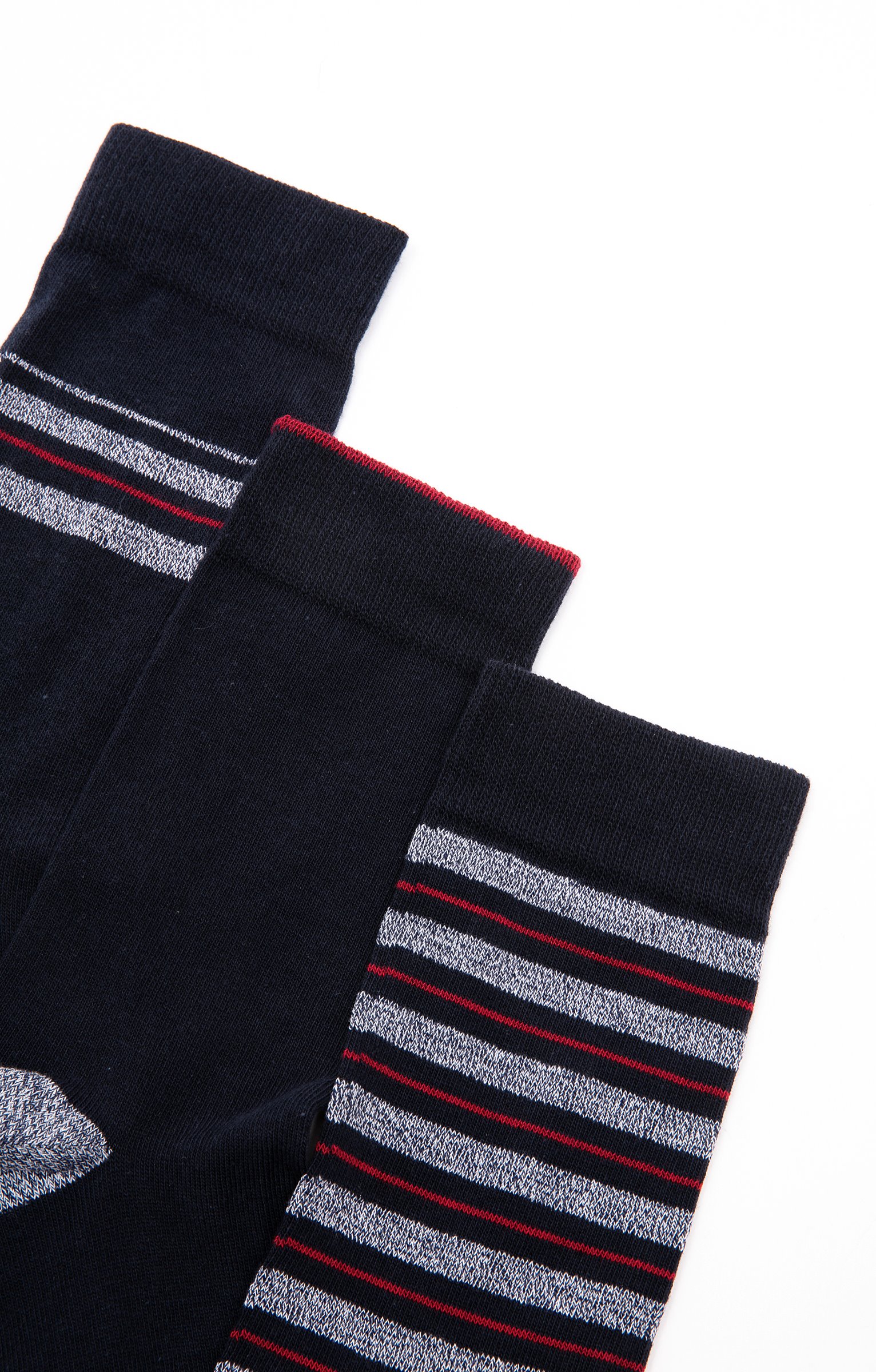 Lot de 3 paires de chaussettes multicolores. Une paire à rayures multicolores et chinées en haut de tige. Une paires à rayures multicolores et rayures chinées sur tige et pied. Une paire avec fine rayure contrastée en finition de tige, talon et pointe en coloris chiné contrasté. Taille en jacquard sous le pied. Maille jersey. Côtes en finition de tige pour une tenue optimale.