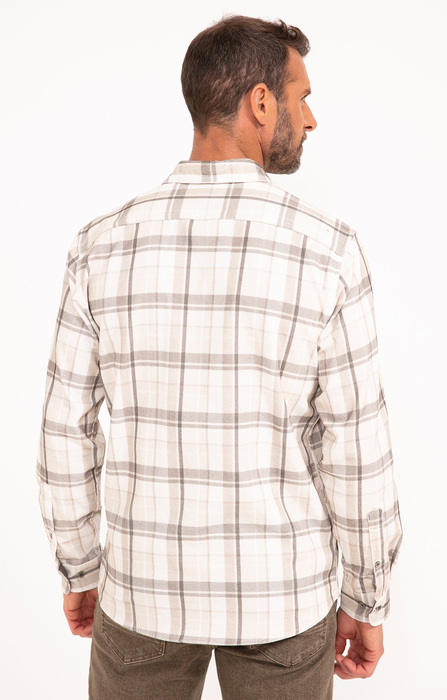 Chemise à manches longues en velours à carreaux. Coupe regular. Manches longues avec poignets boutonnés. Col chemise souple. Fermeture boutonnée sur le devant. Une poche plaquée sur la poitrine. Imprimé à carreaux sur l'ensemble du modèle. Découpe horizontale dans le haut du dos. Bas liquette.