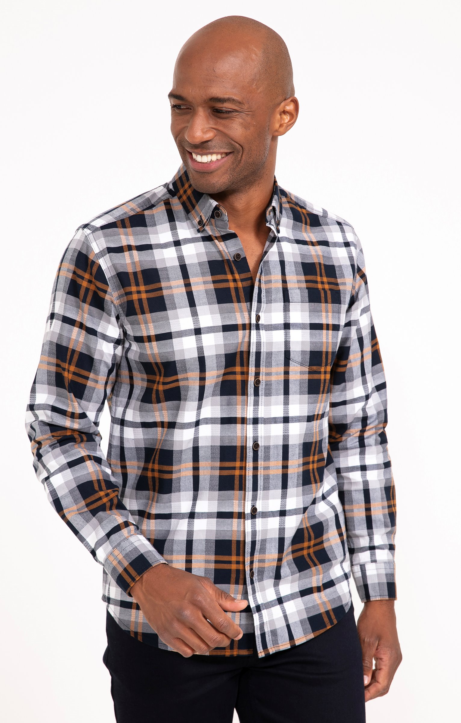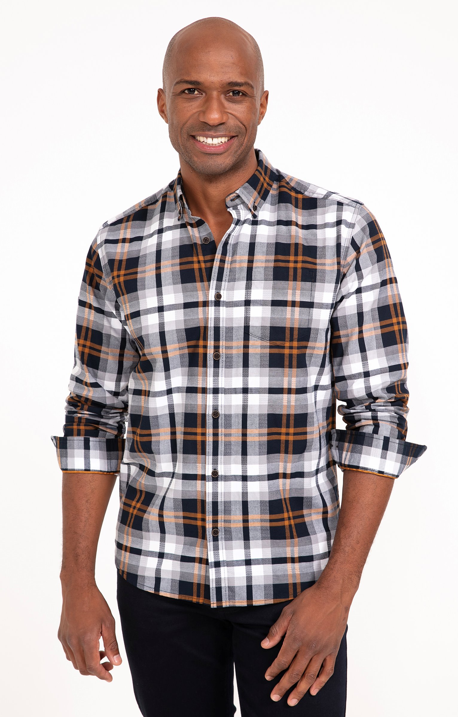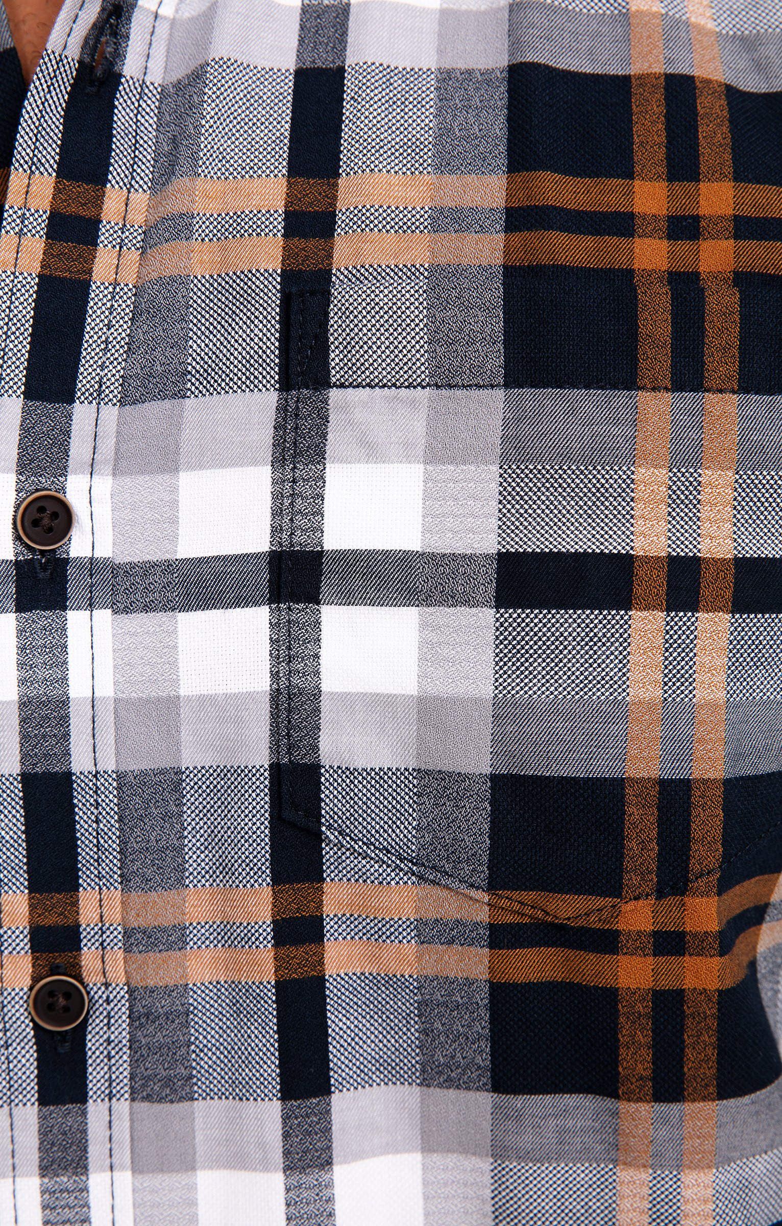 Chemise manches longues à carreaux. Coupe regular. Manches longues avec poignets boutonnés. Col chemise souple. Fermeture par des boutons bicolores sur le devant. Une poche plaquée sur la poitrine. Imprimé à motifs grands carreaux tricolores. Découpe horizontale dans le haut du dos. Bas liquette.