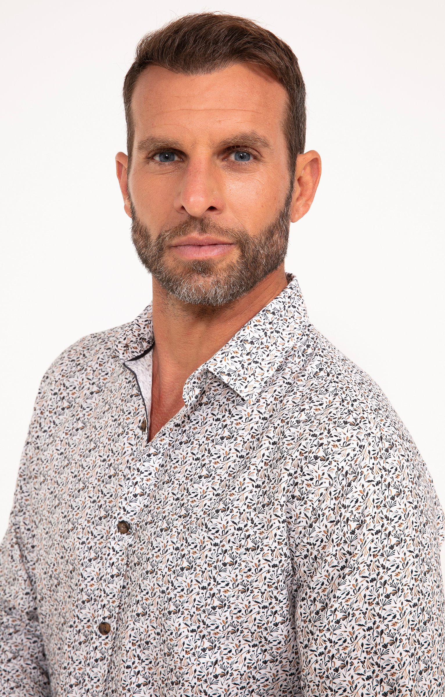 Notre mannequin Nicolas mesure 1m87 et porte une chemise taille M.