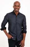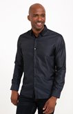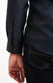 Chemise ajustée à manches longues à mini-pois. Coupe ajustée. Col classique boutonné. Fermeture à boutons fantaisie. Tons bicolores à micro-pois boutonnés. Matière souple. Doublure poignets et patte de boutonnage, liseré patte de boutonnage et finition col en teinte unie contrastée. Tours de poignets ajustables et pattes capucin boutonnés. Pinces cintrantes au dos. Composition contenant du coton.