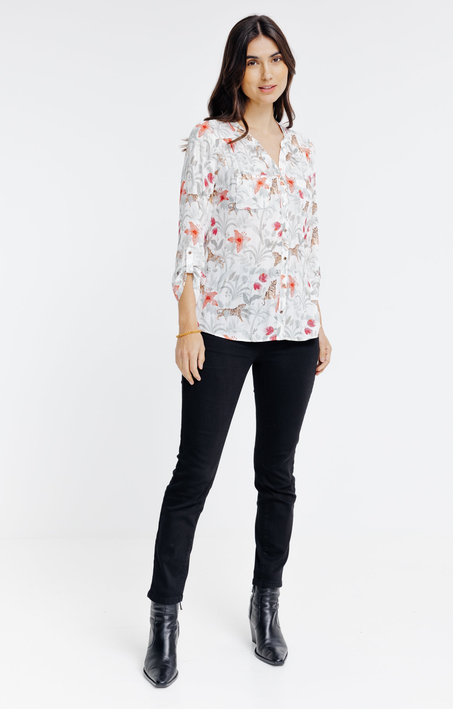 BLOUSE COL MAO IMPRIMEE JUNGLE -