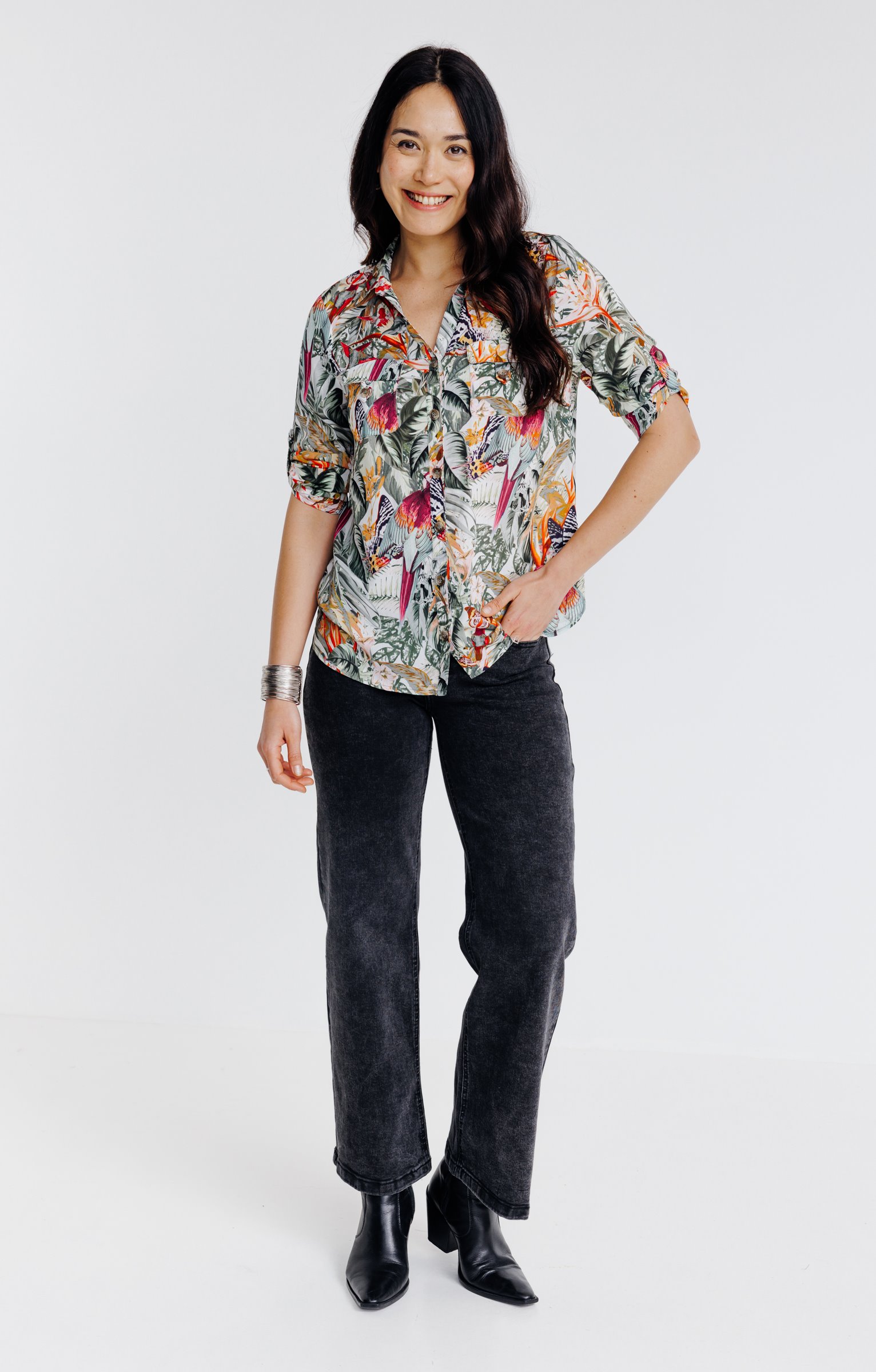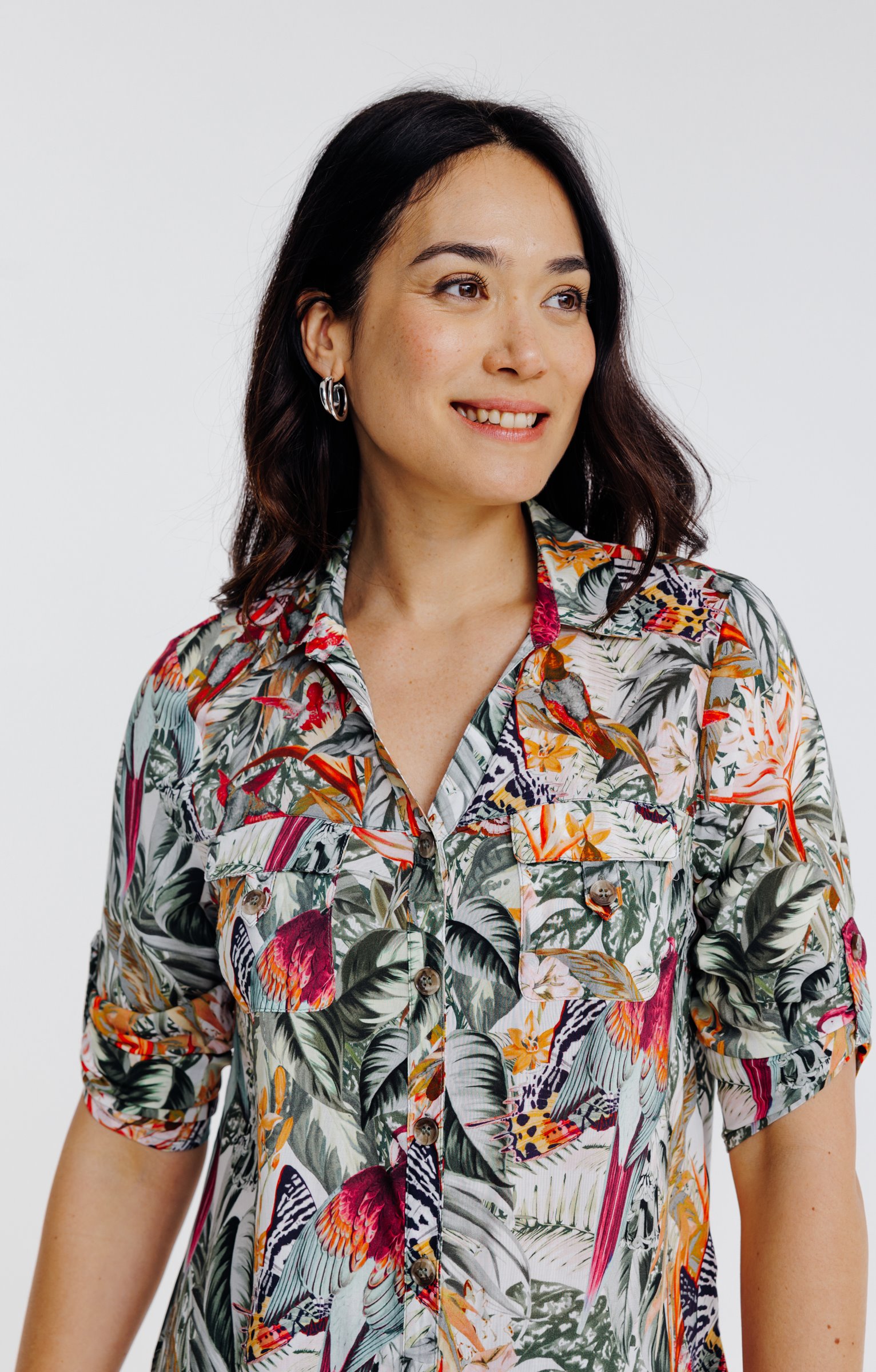 Chemise avec poches imprimé tropical -