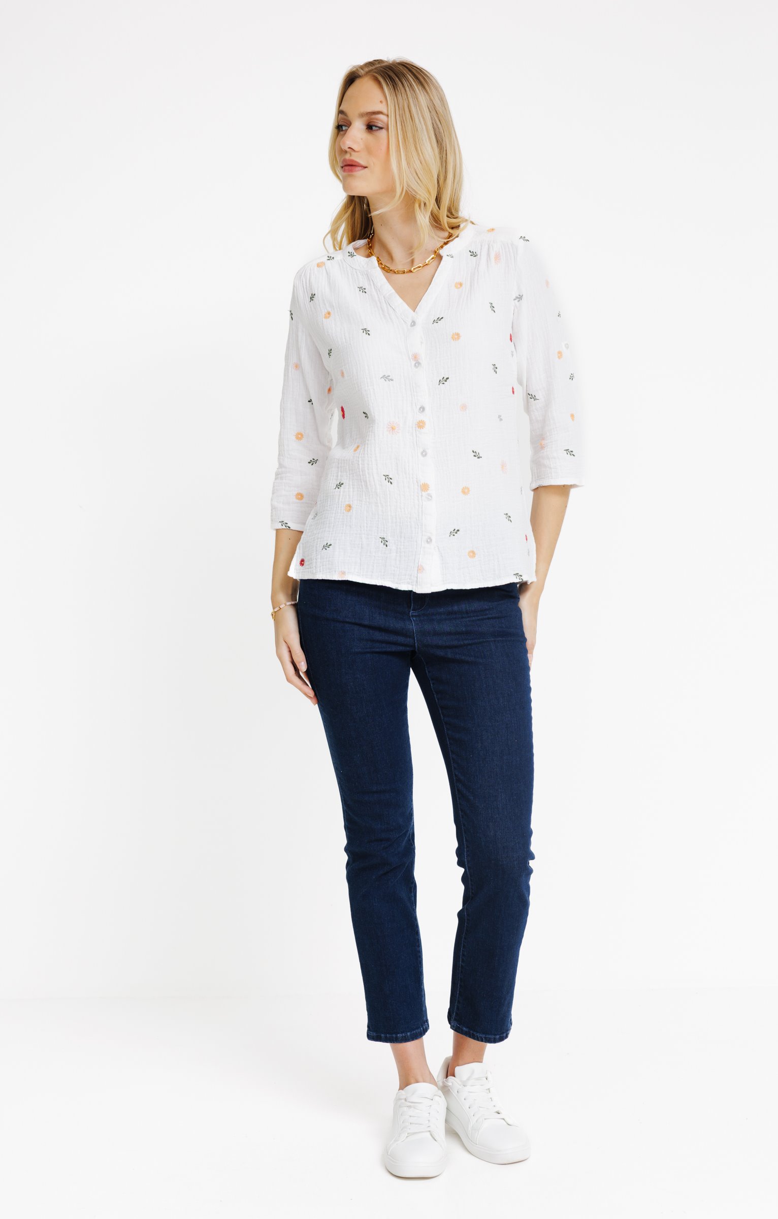 Chemise en gaze de coton brodée -