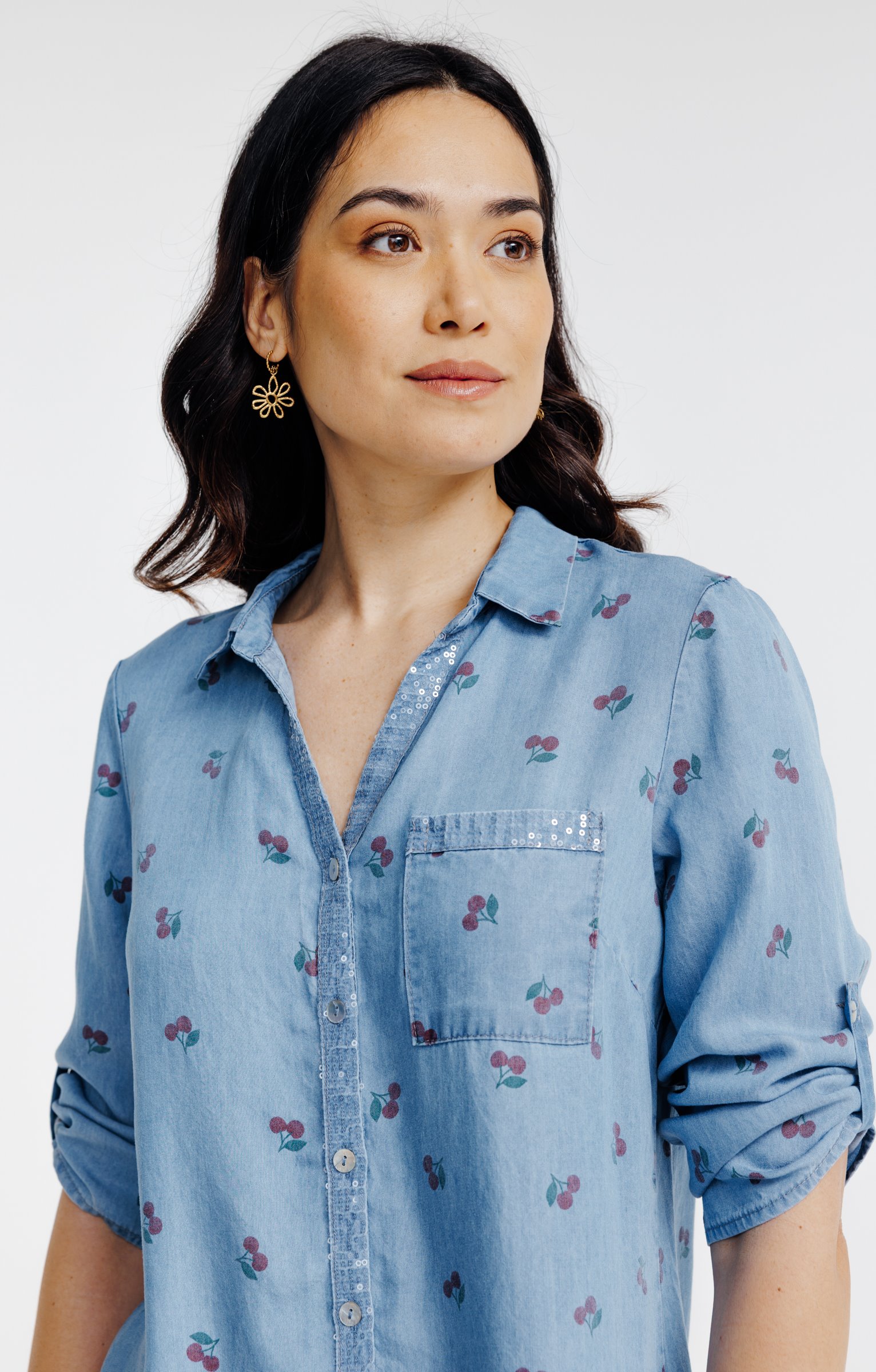 Chemise imprimée cerise en lyocell -