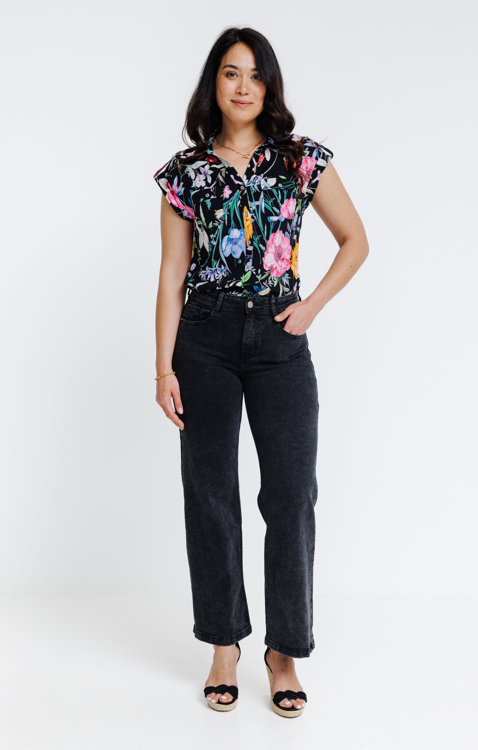 Chemise manches courtes imprimée fleurie -