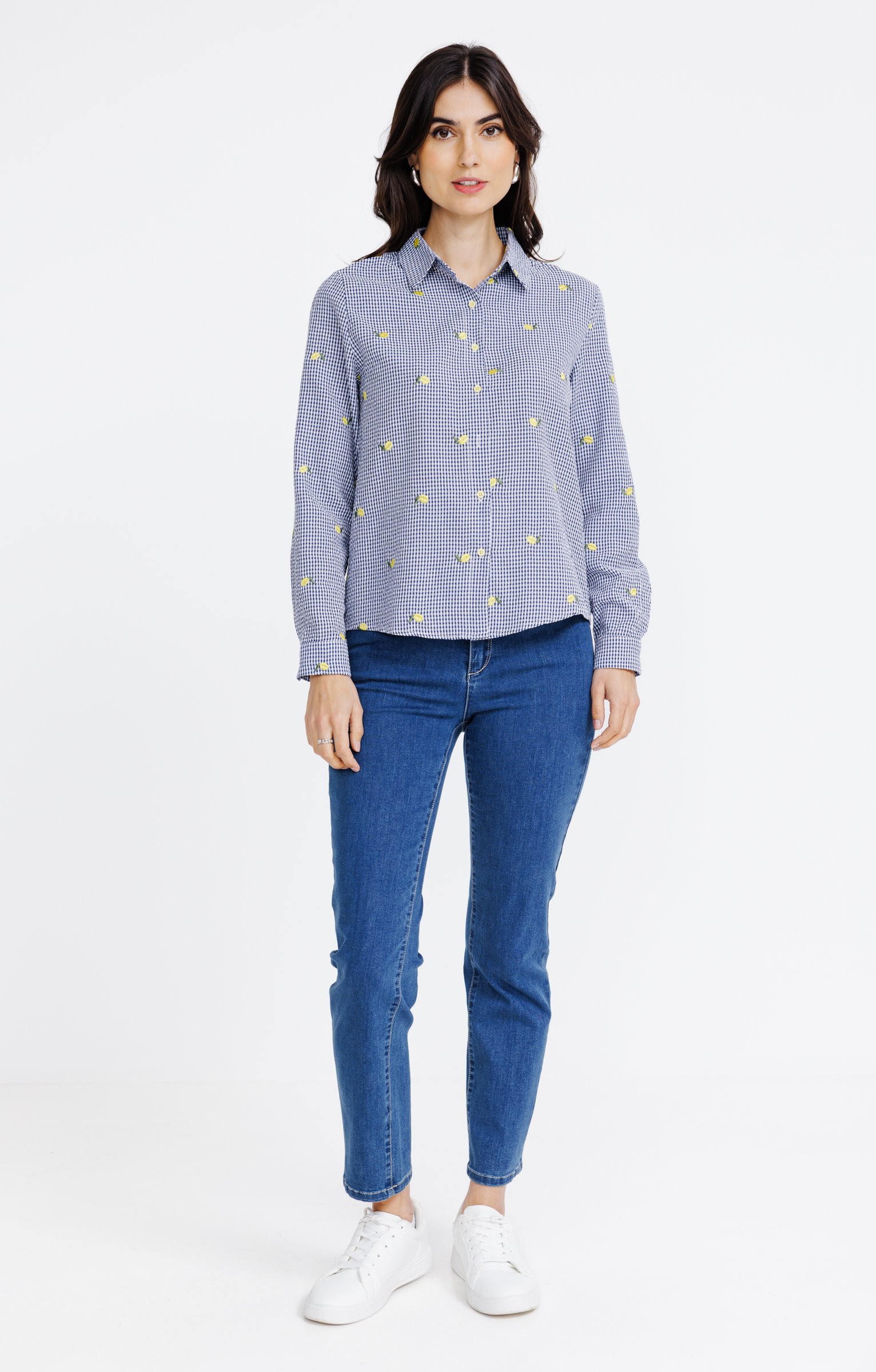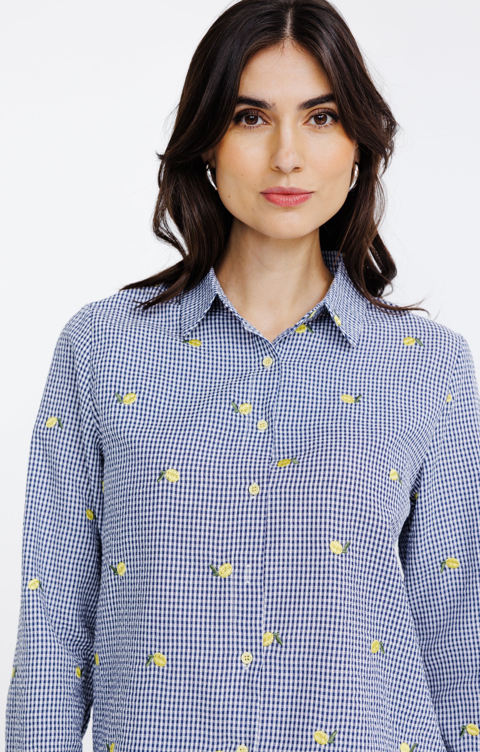Chemise vichy avec broderie citron -