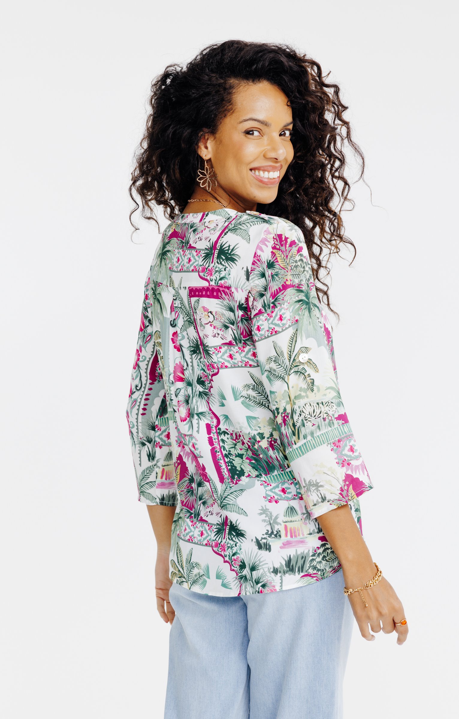 Tunique col chemise imprimé patch animal -