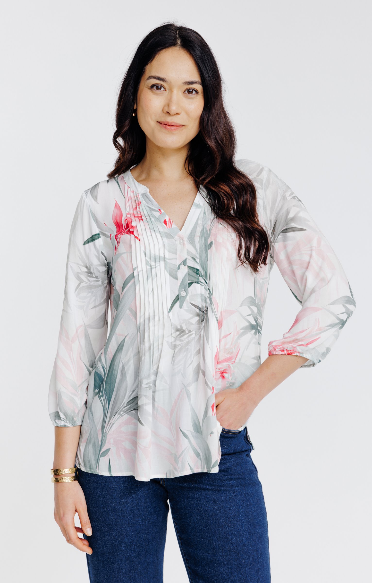 Tunique col mao avec plis -
