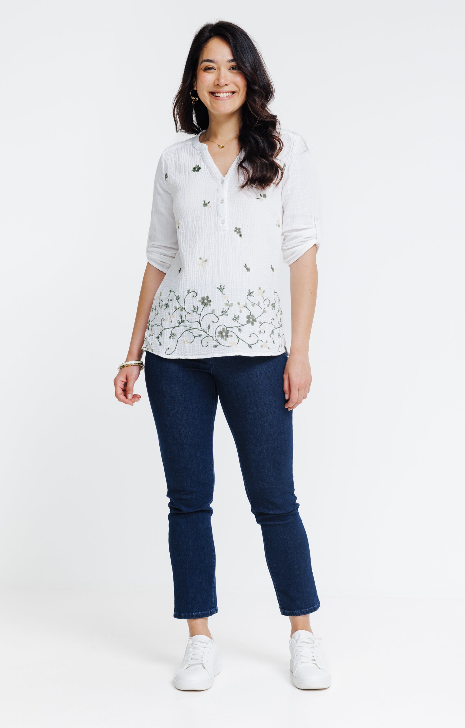 Tee-shirt brodé manches 3/4
