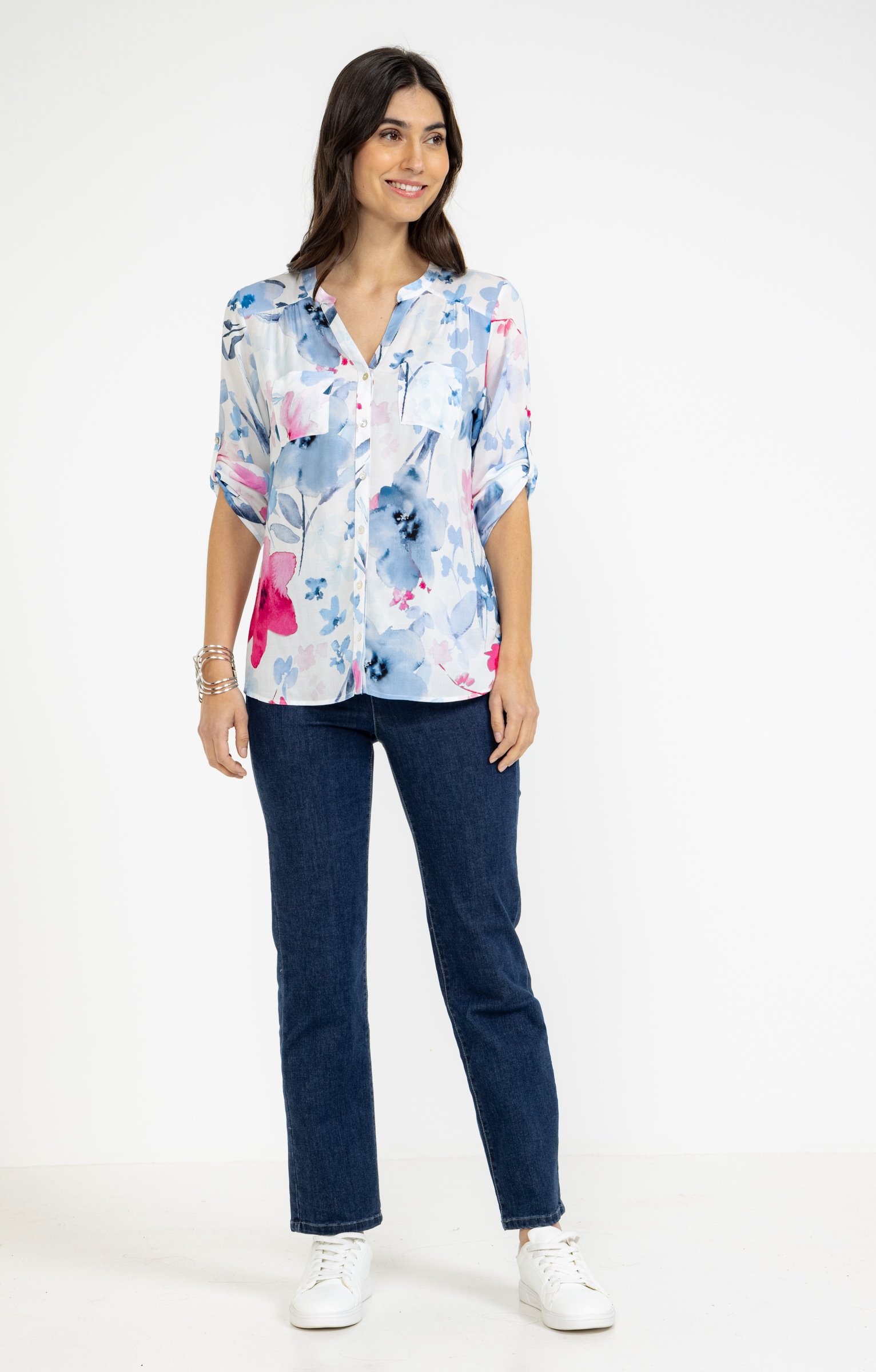 Tunique imprimé fleurs avec plis -