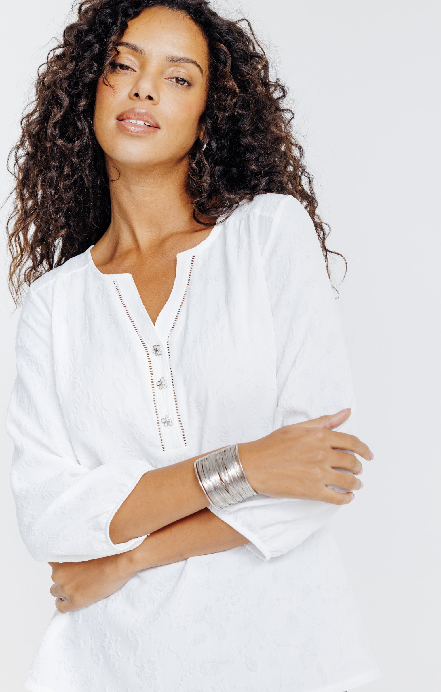 Tunique unie avec imprimé embossé -