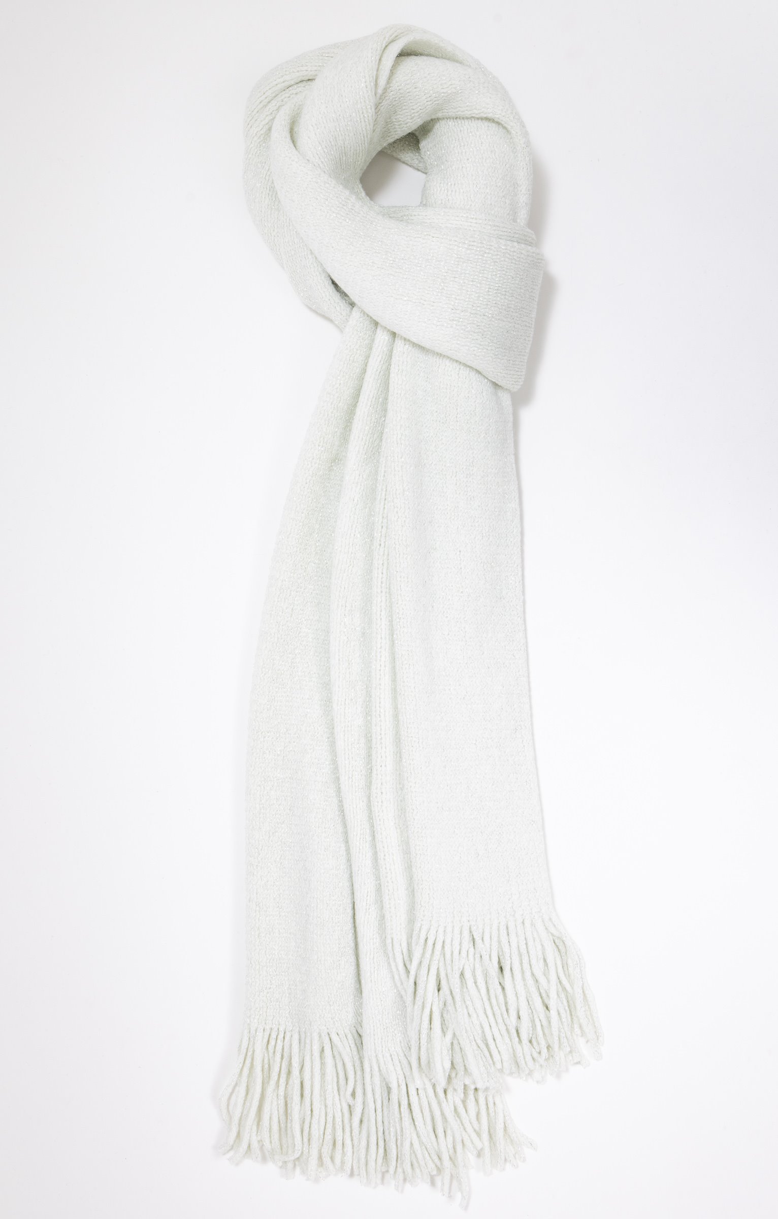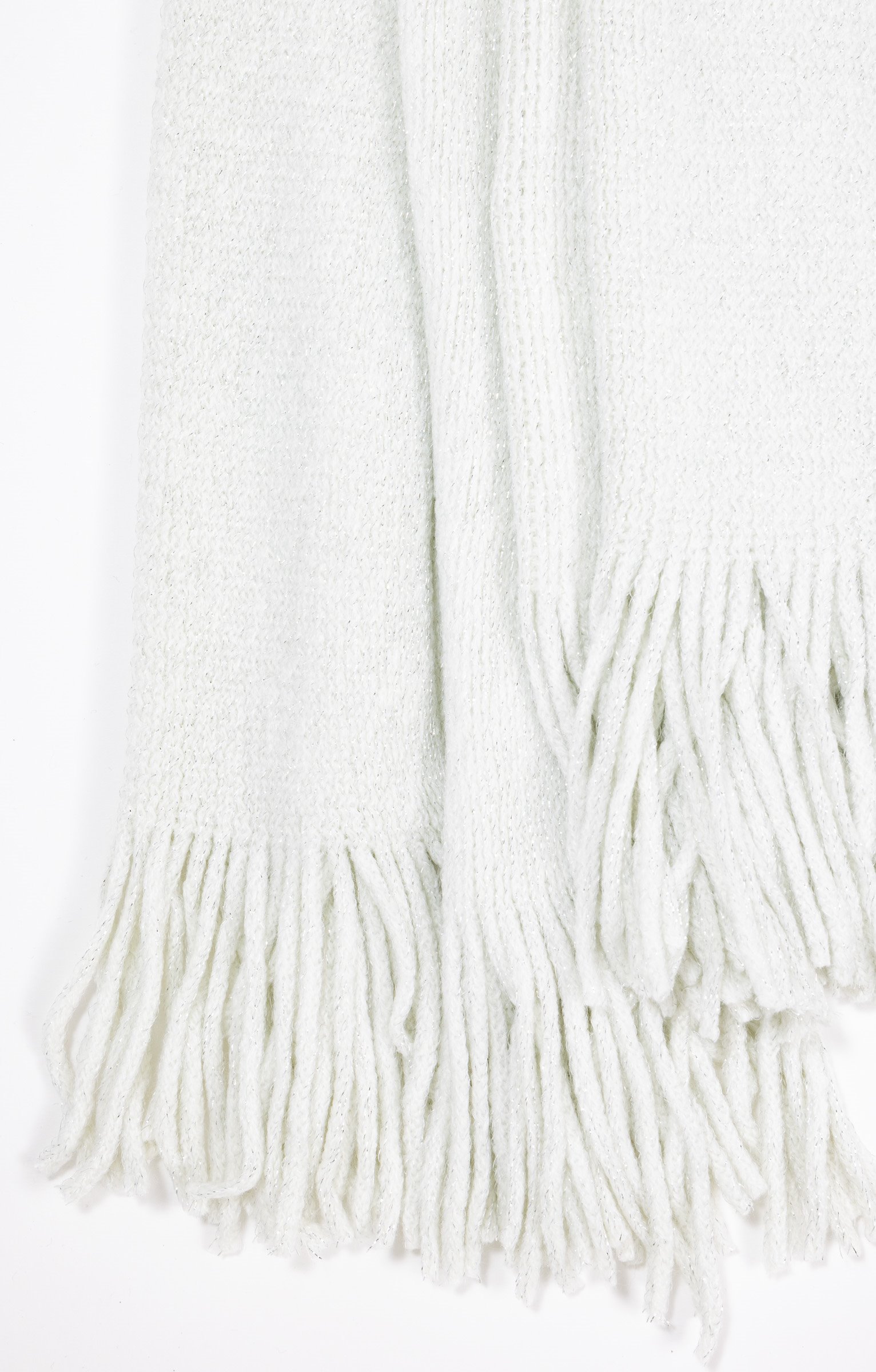 Écharpe à franges en maille métallisée. Forme rectangulaire classique. Dimensions : 38 x 180 cm. Matière chaude. Maille unie rehaussée de fils métallisés. Finitions à fines franges torsadées. Portez cette écharpe au quotidien, sur une veste en jean ou en cuir.