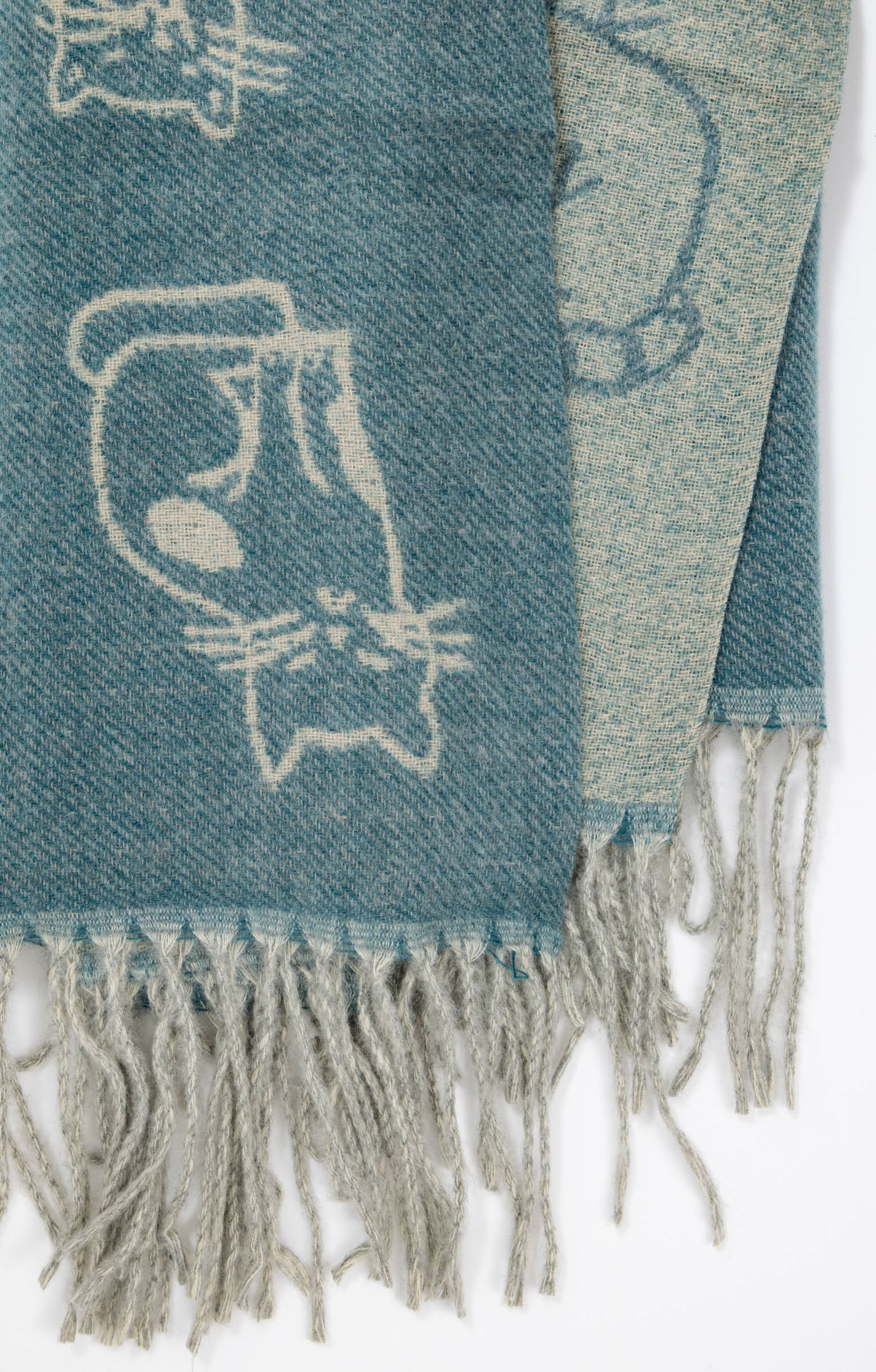 Craquez pour cette écharpe et ses motifs originaux. Foulard chaud imprimé avec motifs chats en jacquard. Forme rectangulaire classique. Dimensions : 65 x 180 cm. Matière douce et chaude. Imprimé à motifs chats en jacquard sur l'ensemble du modèle. Finitions franges torsadées.