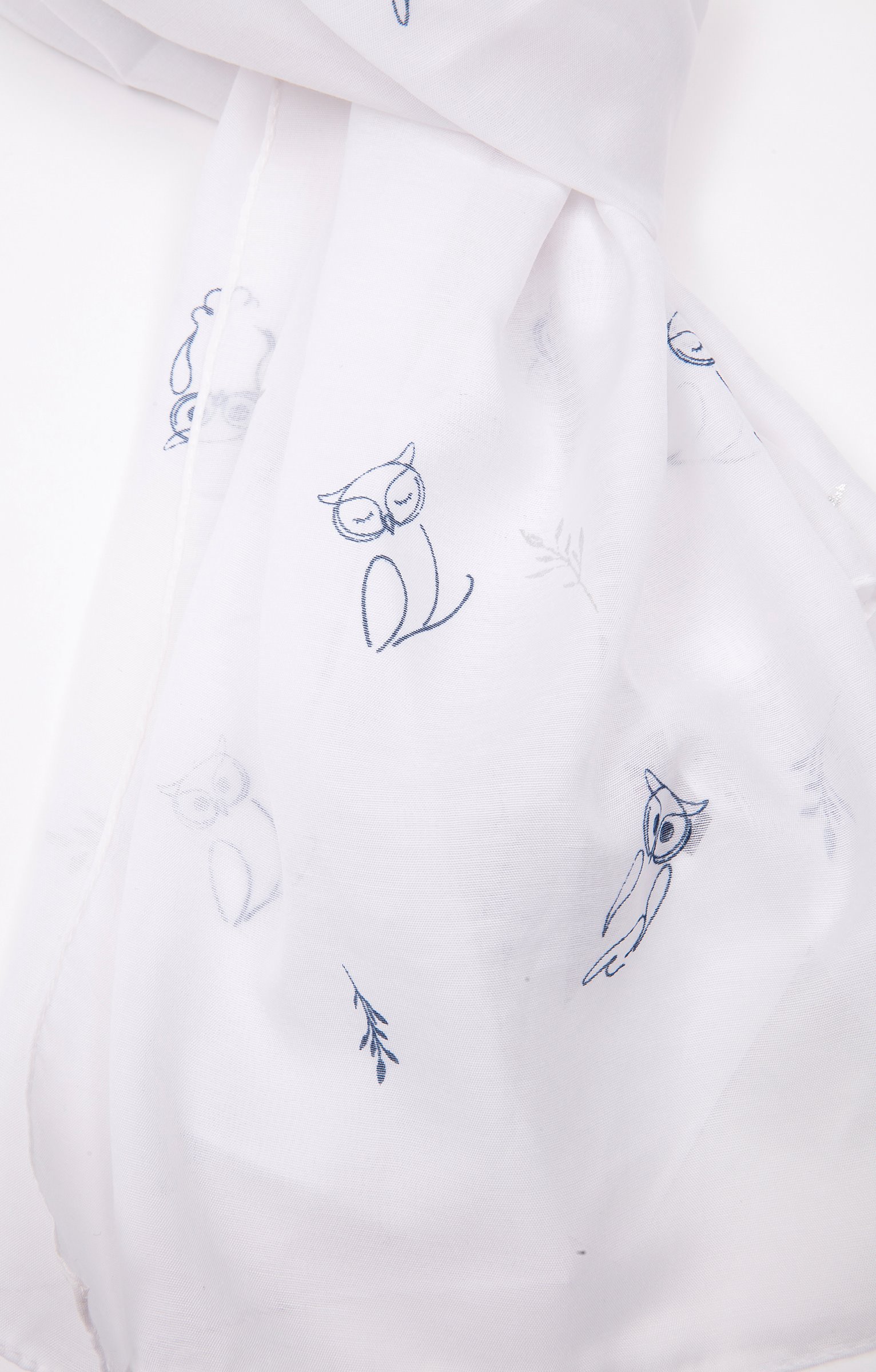 Ajoutez une touche de fantaisie à votre tenue avec ce foulard. Foulard fin imprimé hiboux. Forme rectangulaire classique. Imprimé hiboux et feuillage sur l'ensemble du modèle. Alternance d'hiboux avec les yeux ouverts et fermés. Matière fine transparente. Bords surpiqués. Dimensions: 70 x 180 cm.