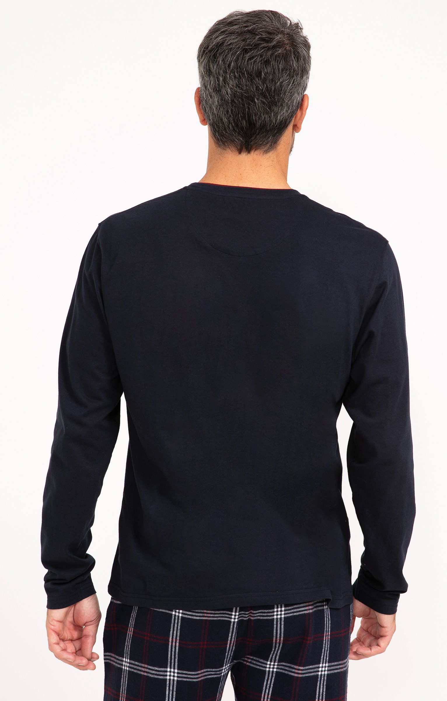 Notre mannequin Mathieu mesure 1m84 et porte un pyjama taille M.