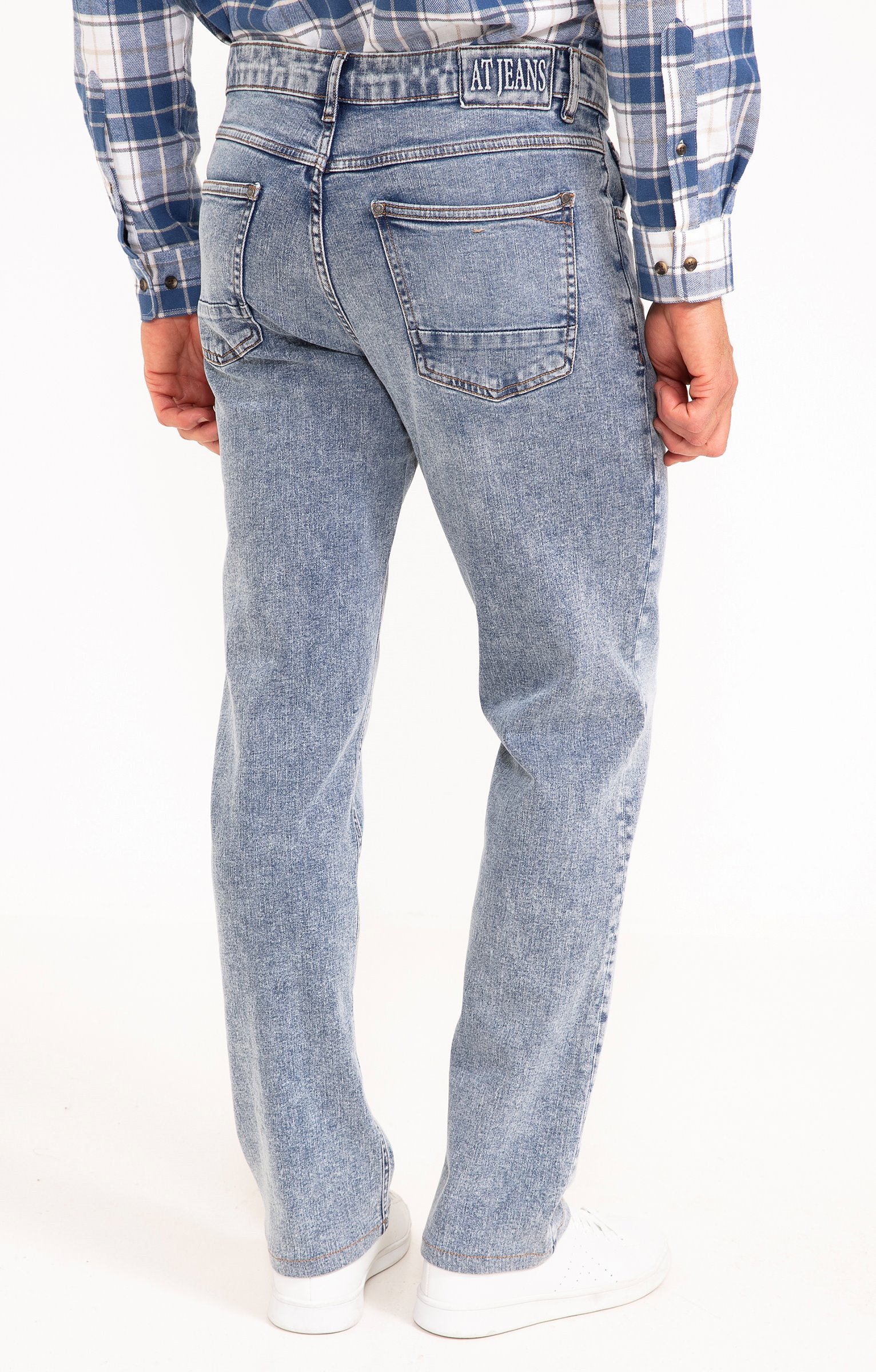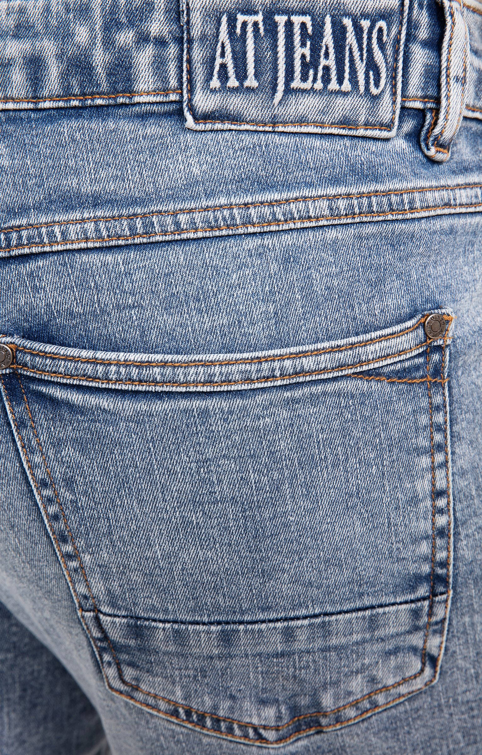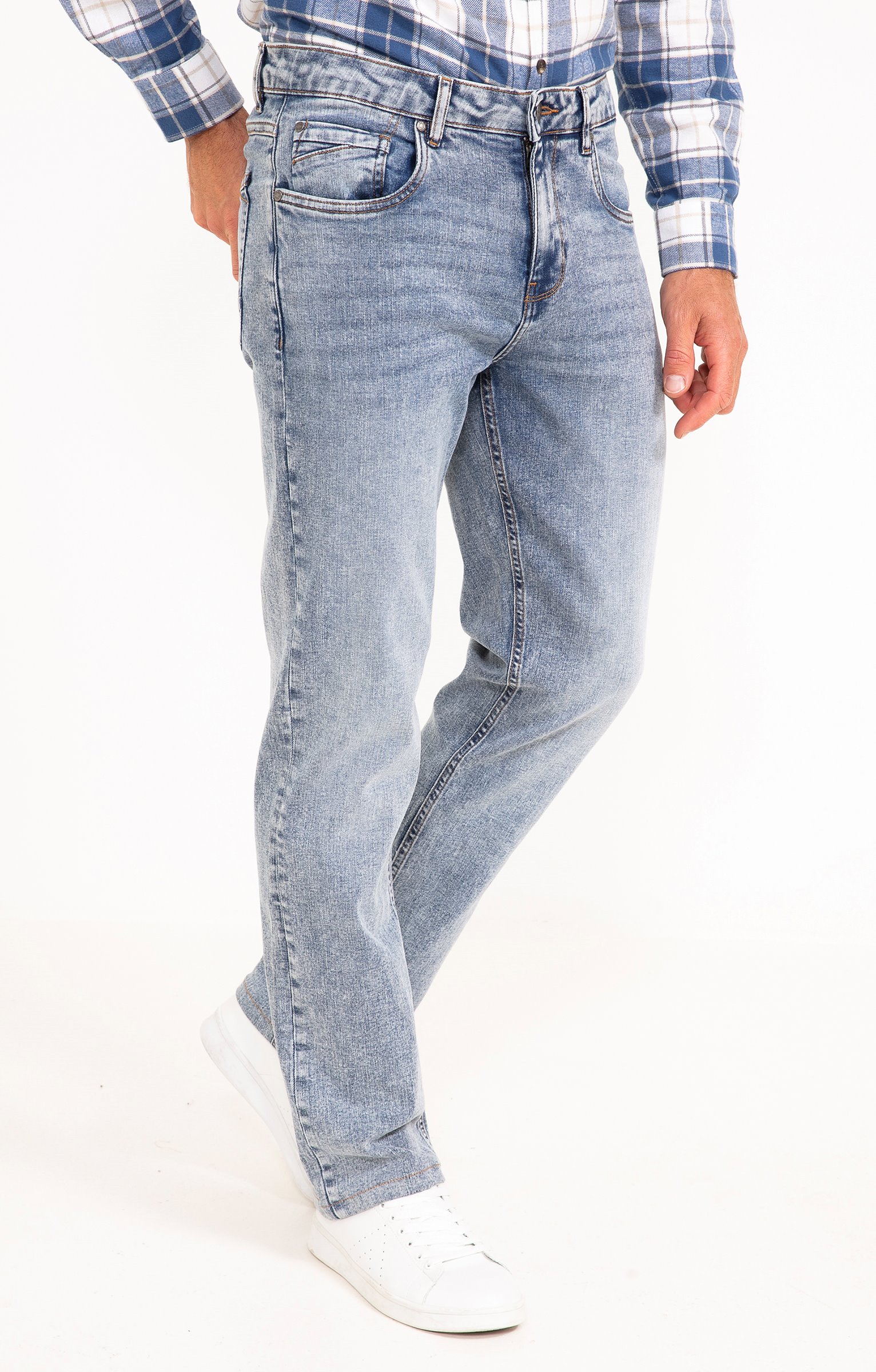 Jean droit extensible aux poches fantaisie. Coupe regular. Fermeture siglée à bouton métallique et zip. 2 poches cavalières et une poche ticket devant, 2 poches plaquées au dos. Coloris délavé. Denim extensible. Passants à la taille. Découpes fantaisie poche ticket et poches plaquées. Surpiqûres contrastées. Composition contenant du coton recyclé.