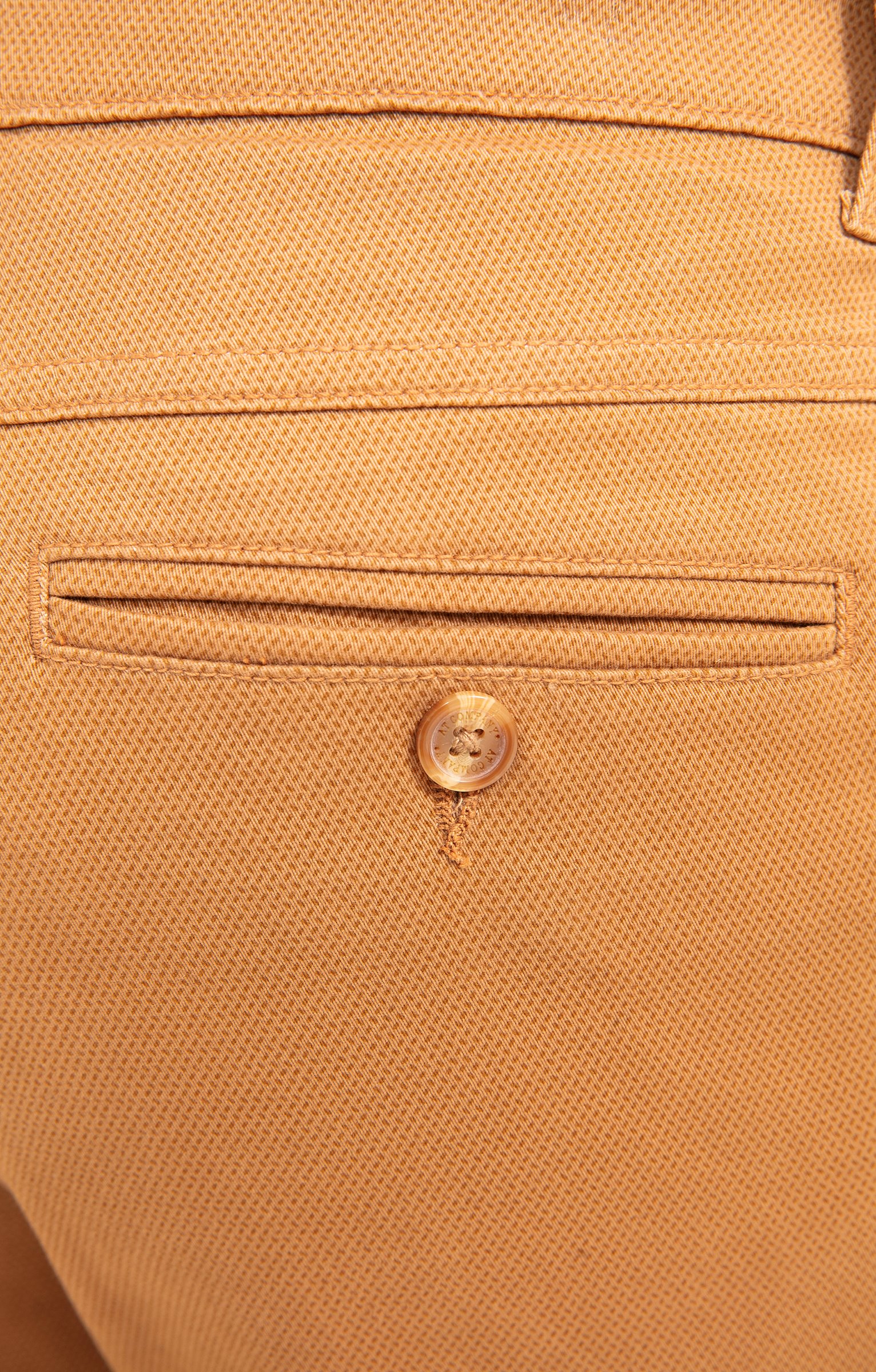Pantalon chino droit à motifs géométriques imprimés. Coupe regular. Fermeture à bouton marbré siglé et zip. 2 poches italiennes devant, une poche passepoilée sous la taille devant, 2 poches boutonnées à double passepoil au dos. Petits motifs tirets contrastés imprimés. Toile extensible. Ceinture à passants. Empiècement haut au dos.