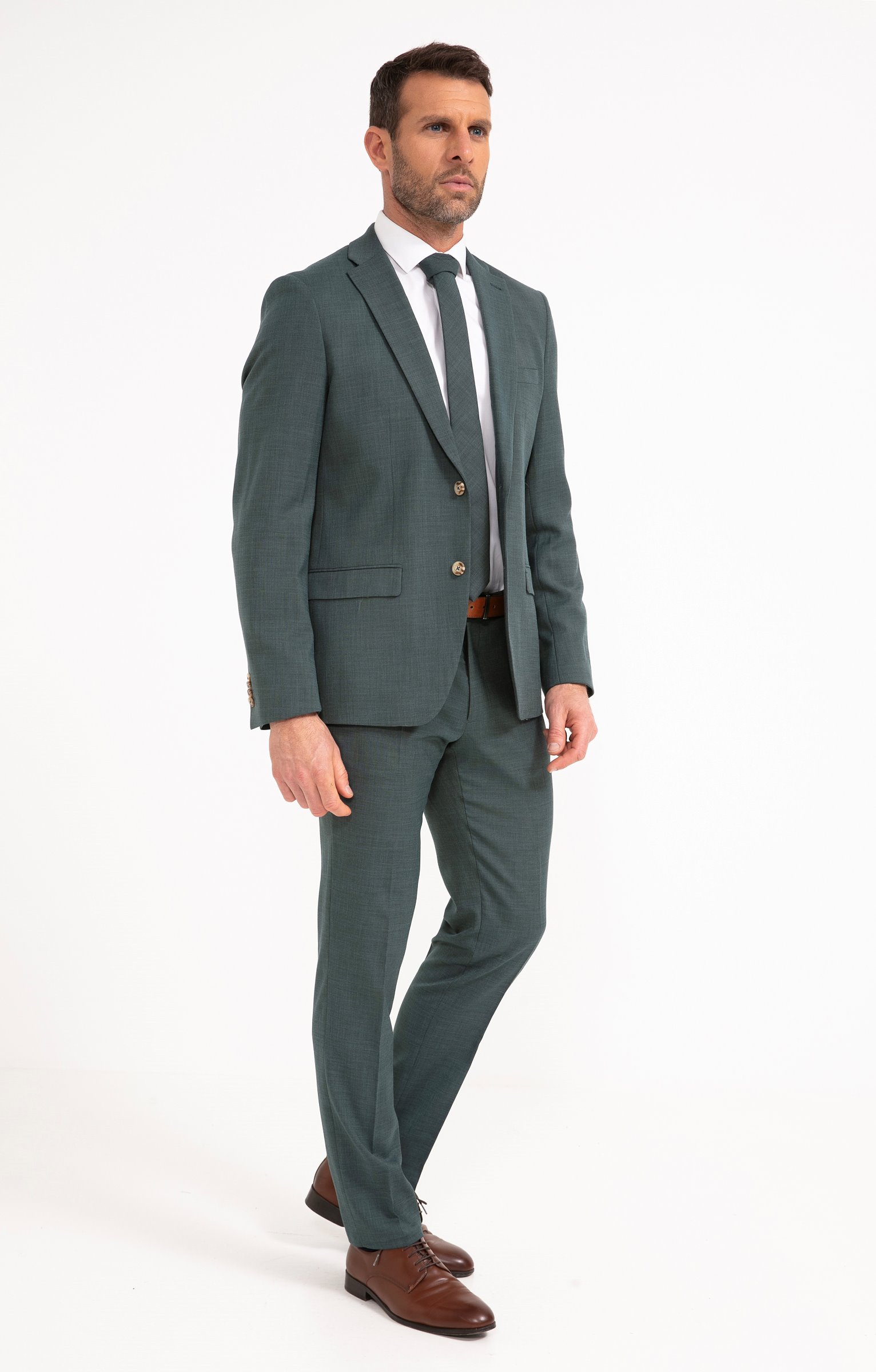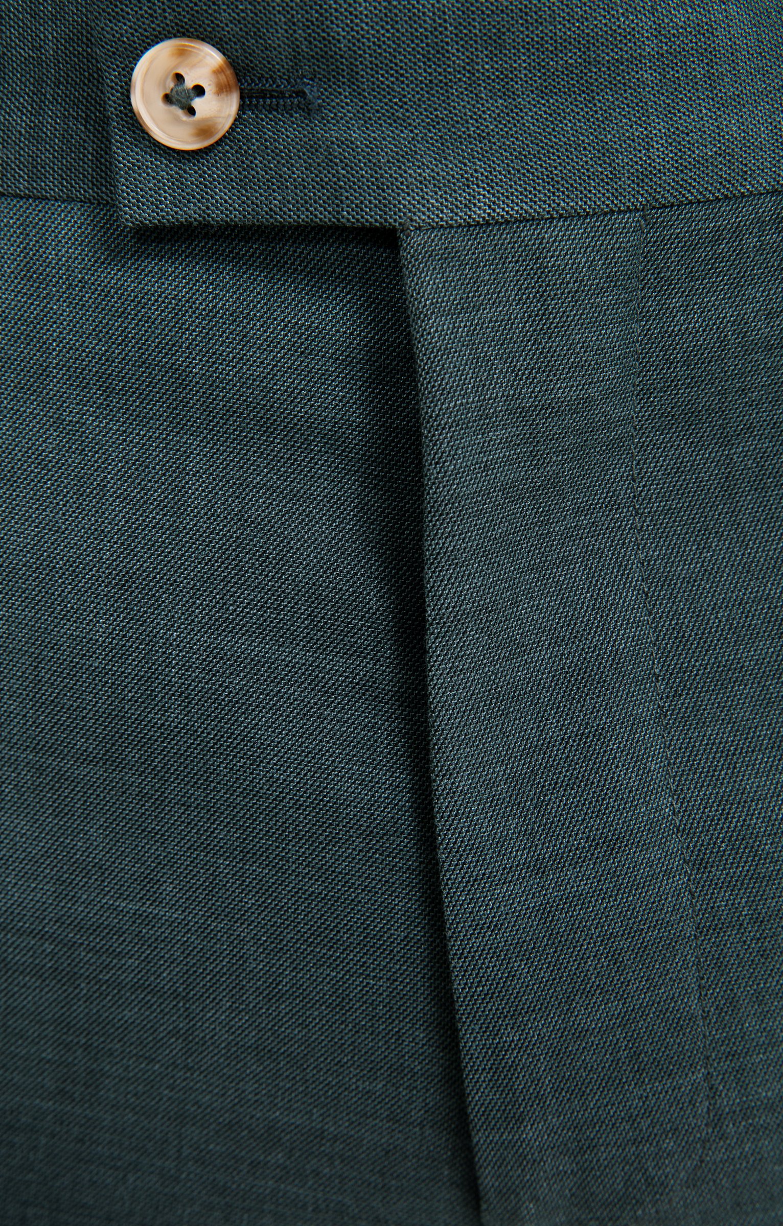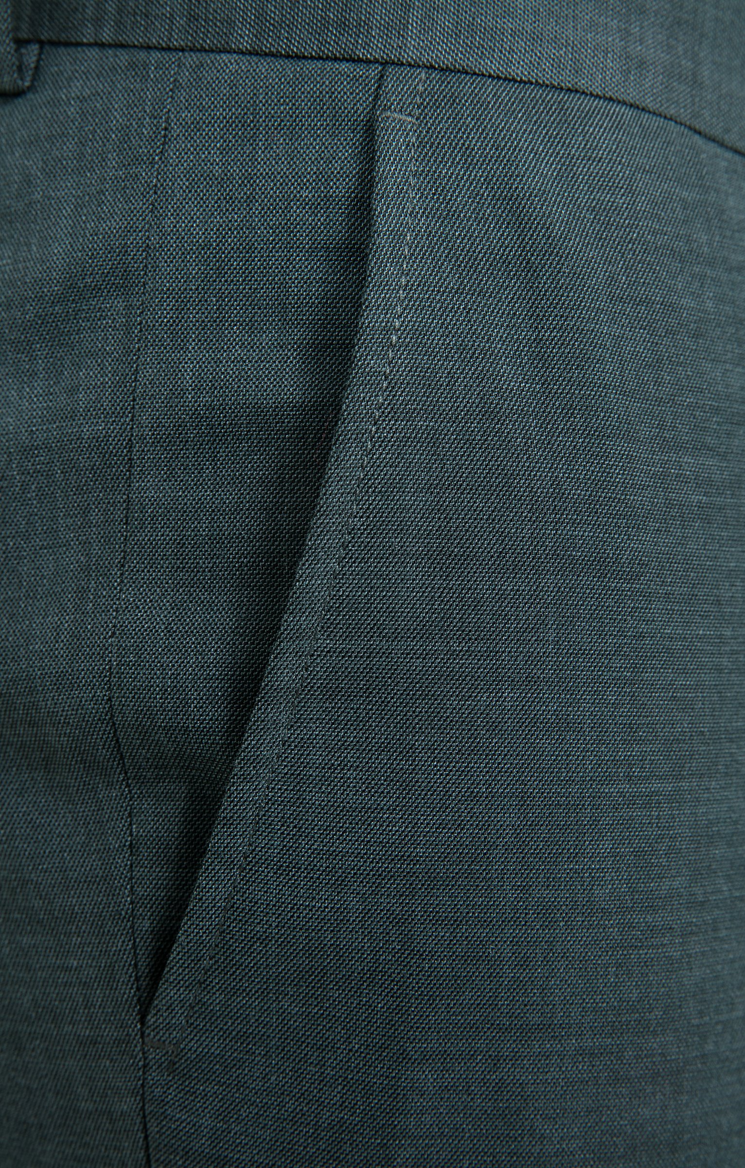 Pantalon de costume ajusté en coloris faux uni. Coupe ajustée. Fermeture à bouton marbré décentré et zip. 2 poches italiennes devant et 2 poches à double passepoil boutonné au dos. Teinte subtilement chinée. Matière extensible. Ceinture à passants. Poches devant renforcées par surpiqûres en partie haute.