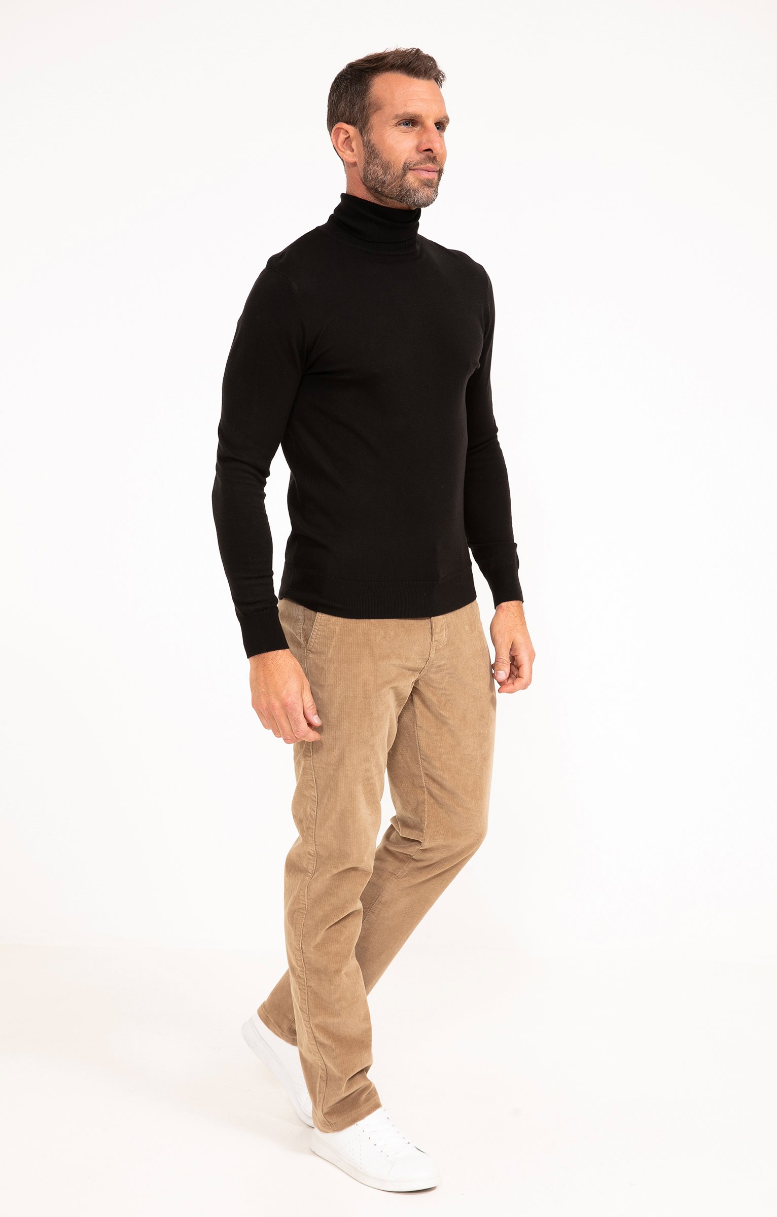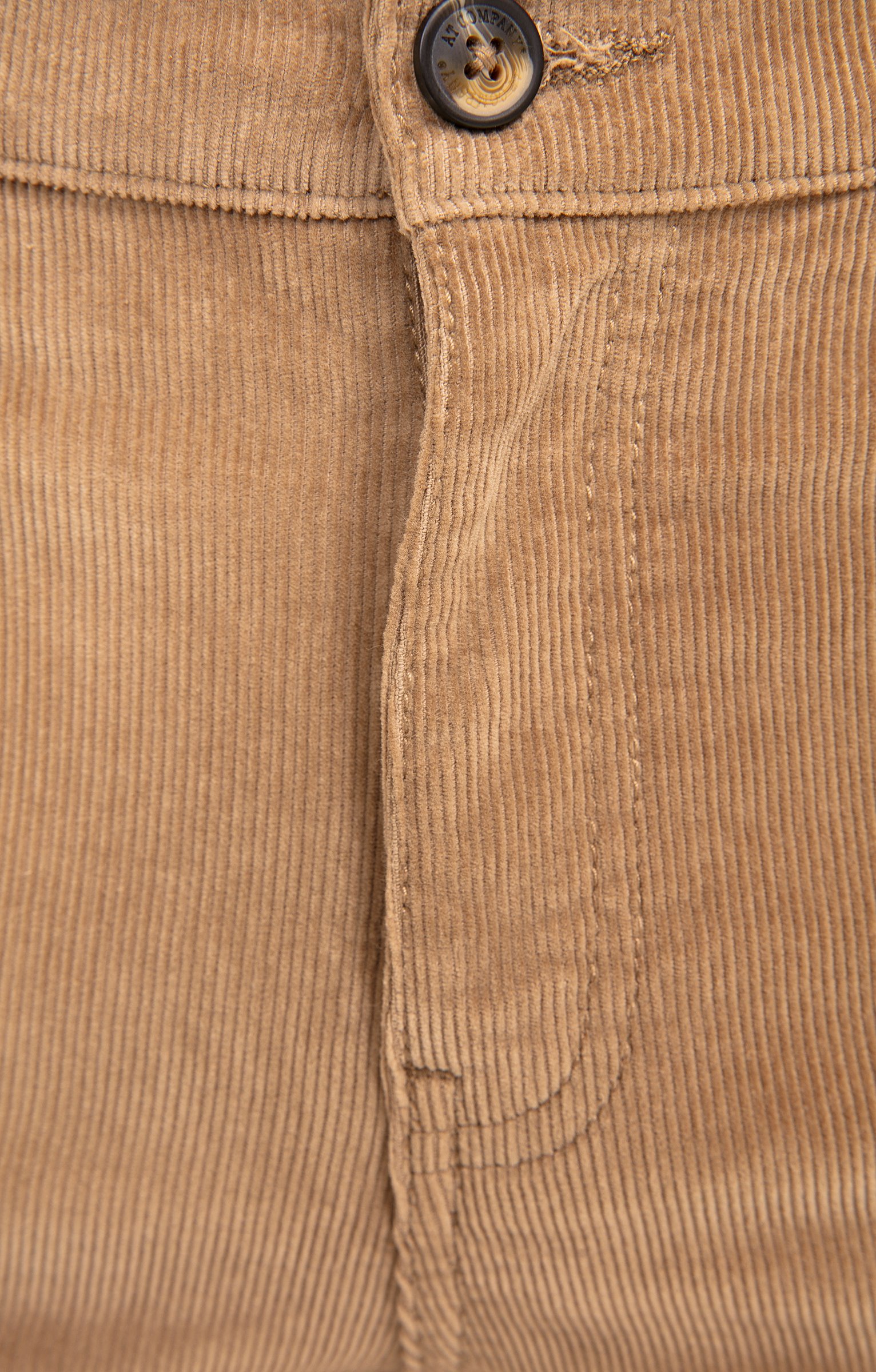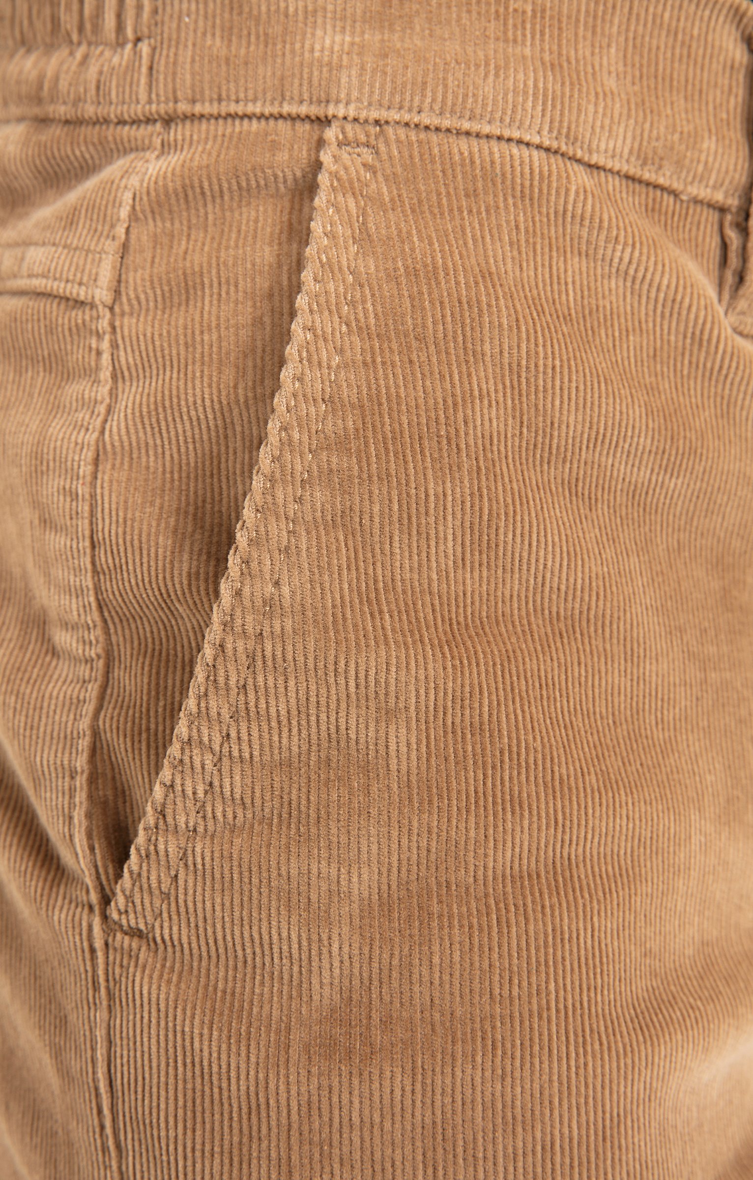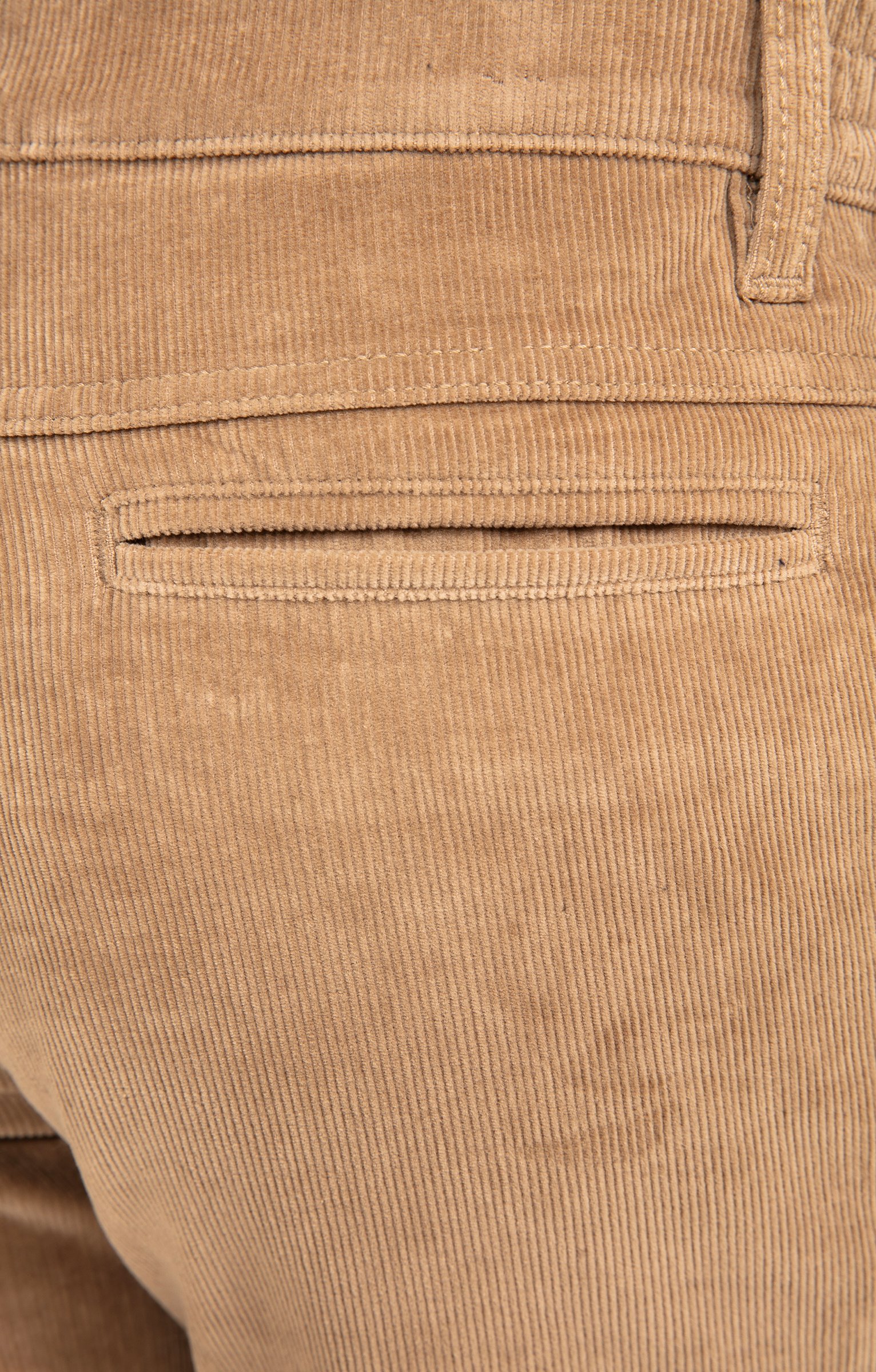 Pantalon chino droit en velours uni. Coupe regular. Fermeture à bouton marbré et zip. 2 poches italiennes devant et 2 poches à double passepoil au dos. Teinte unie. Velours extensible côtelé milleraies. Passants à la taille. Ceinture élastiquée sur les côtés. Empiècement haut au dos.