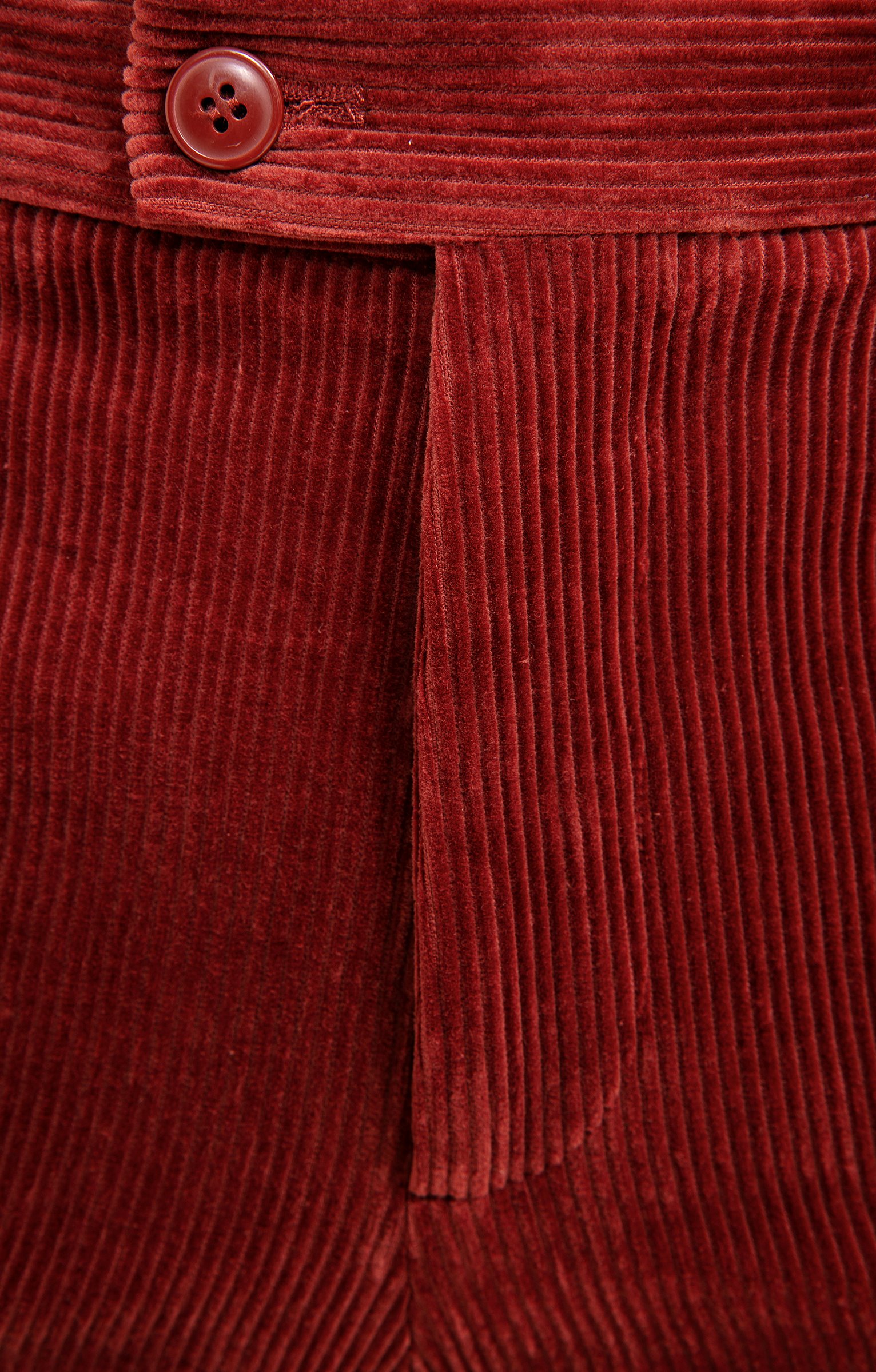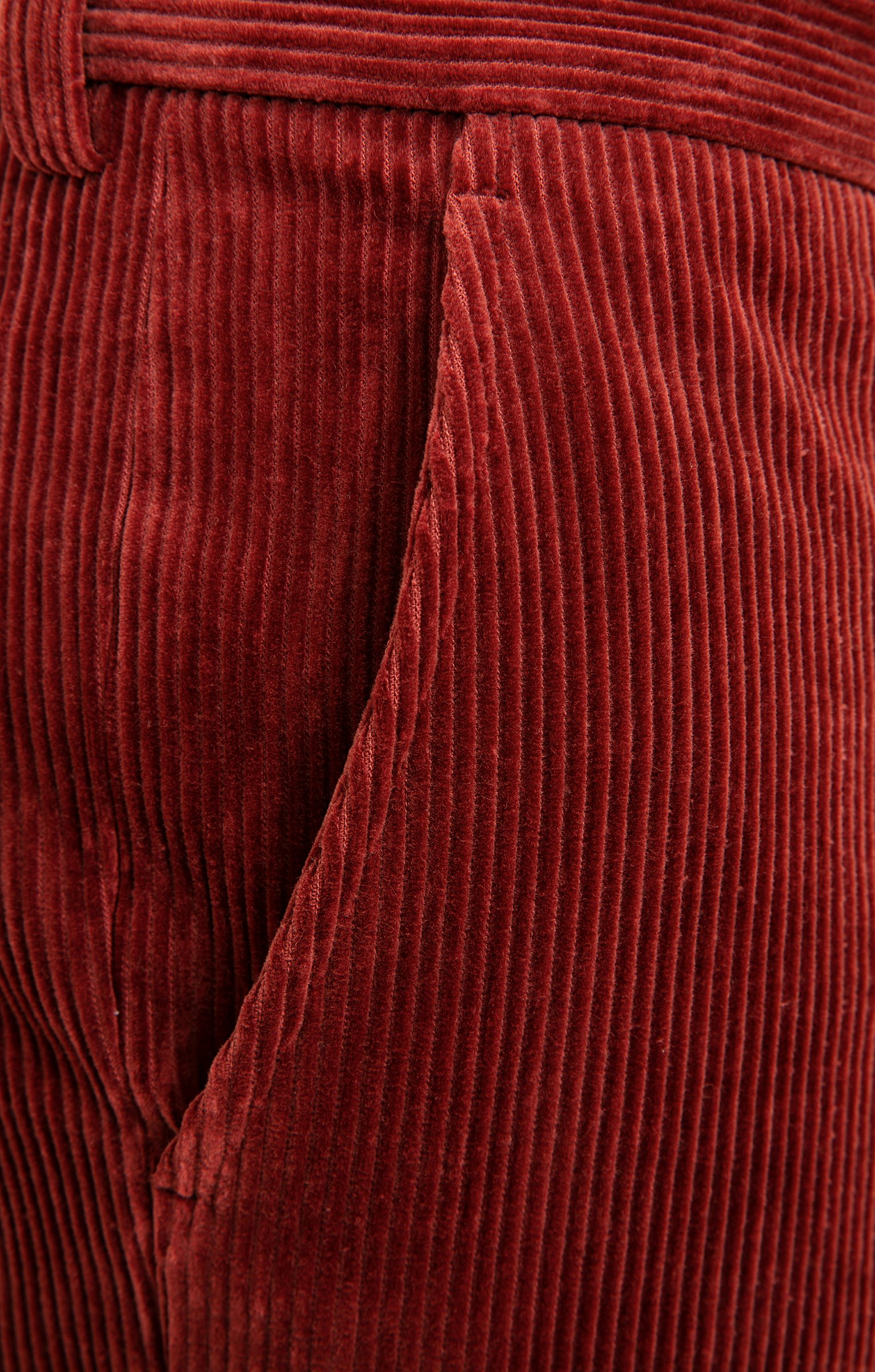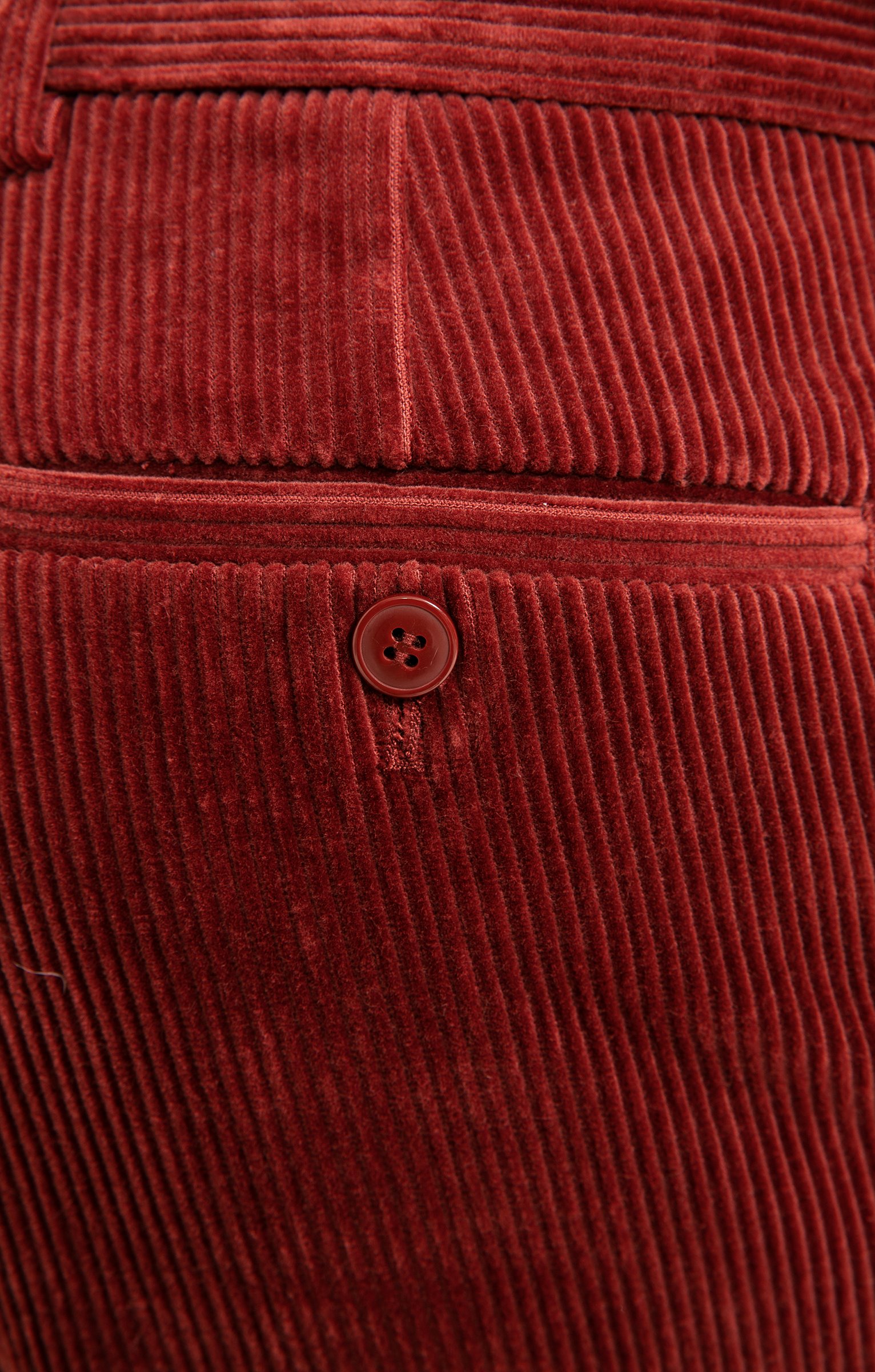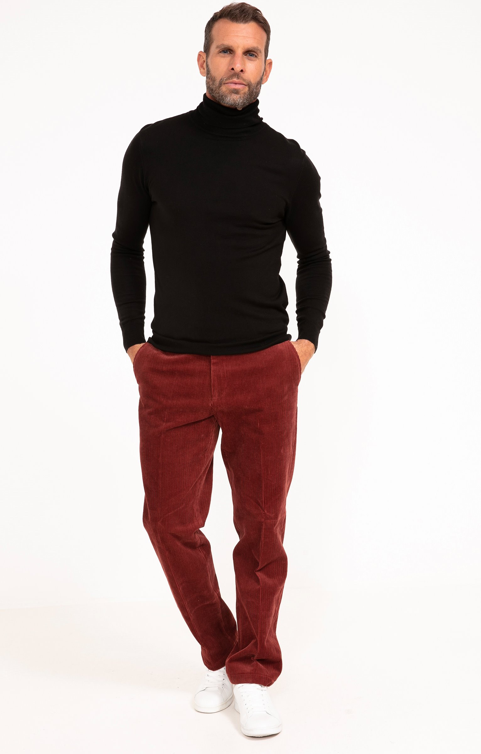 Pantalon confort en velours côtelé extensible et uni. Coupe confort. Fermeture à bouton fantaisie ton sur ton décentré et zip. 2 poches italiennes devant et 2 poches passepoilées boutonnées au dos. Coloris uni. Velours extensible milleraies. Passants à la taille. Pinces d'ajustement au-dessus des poches au dos.