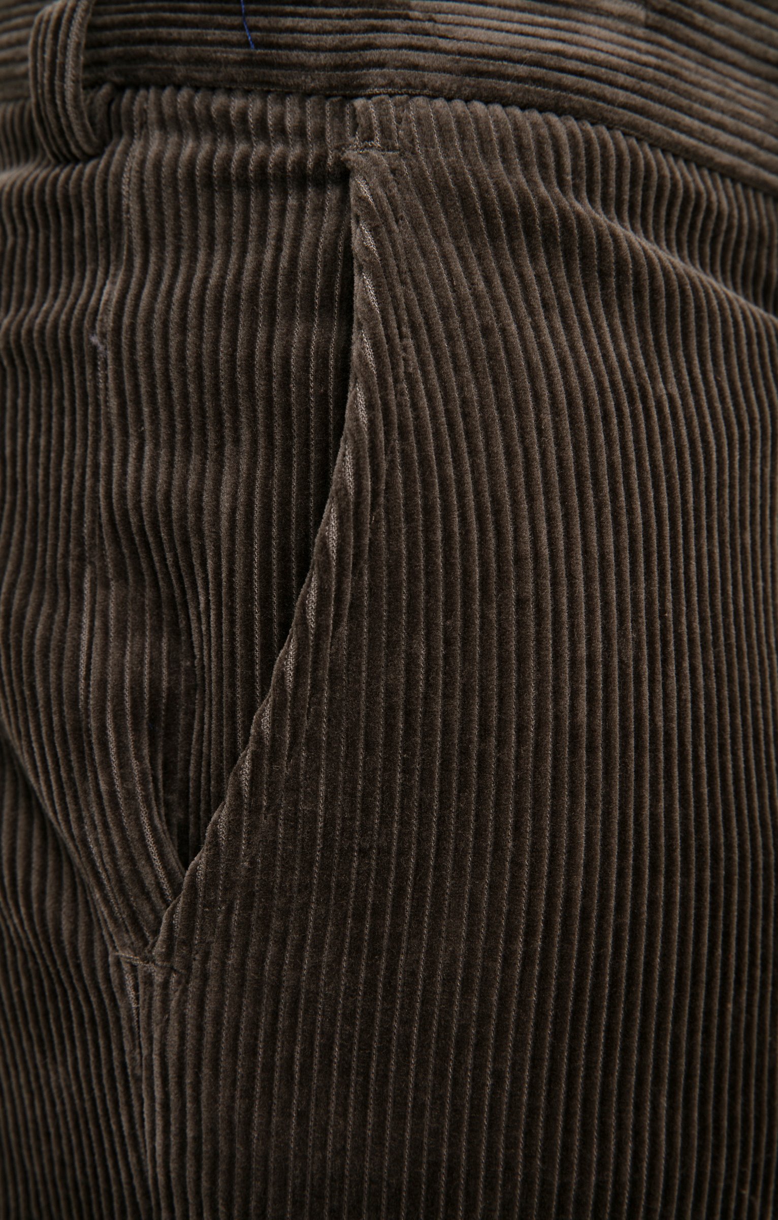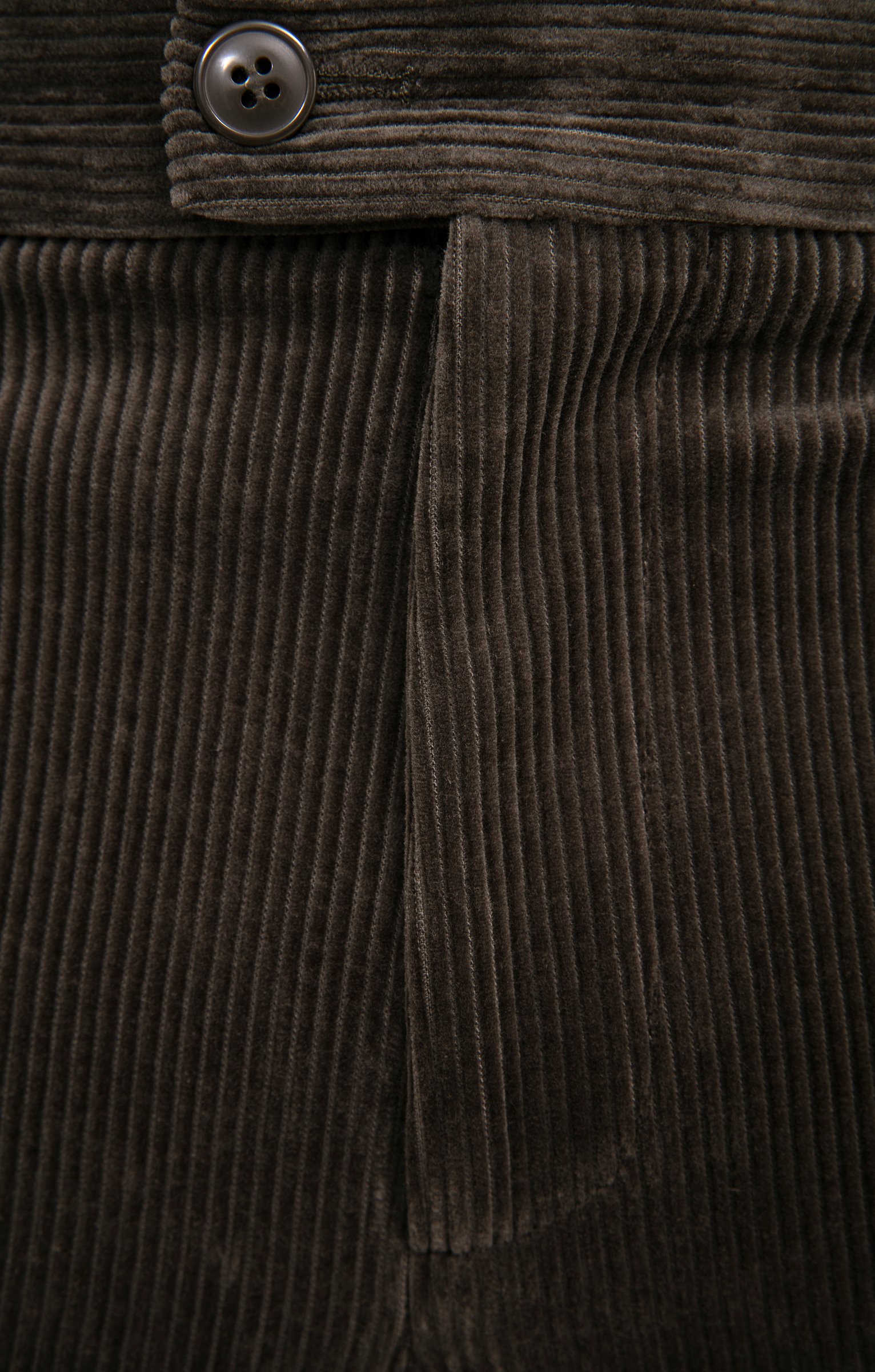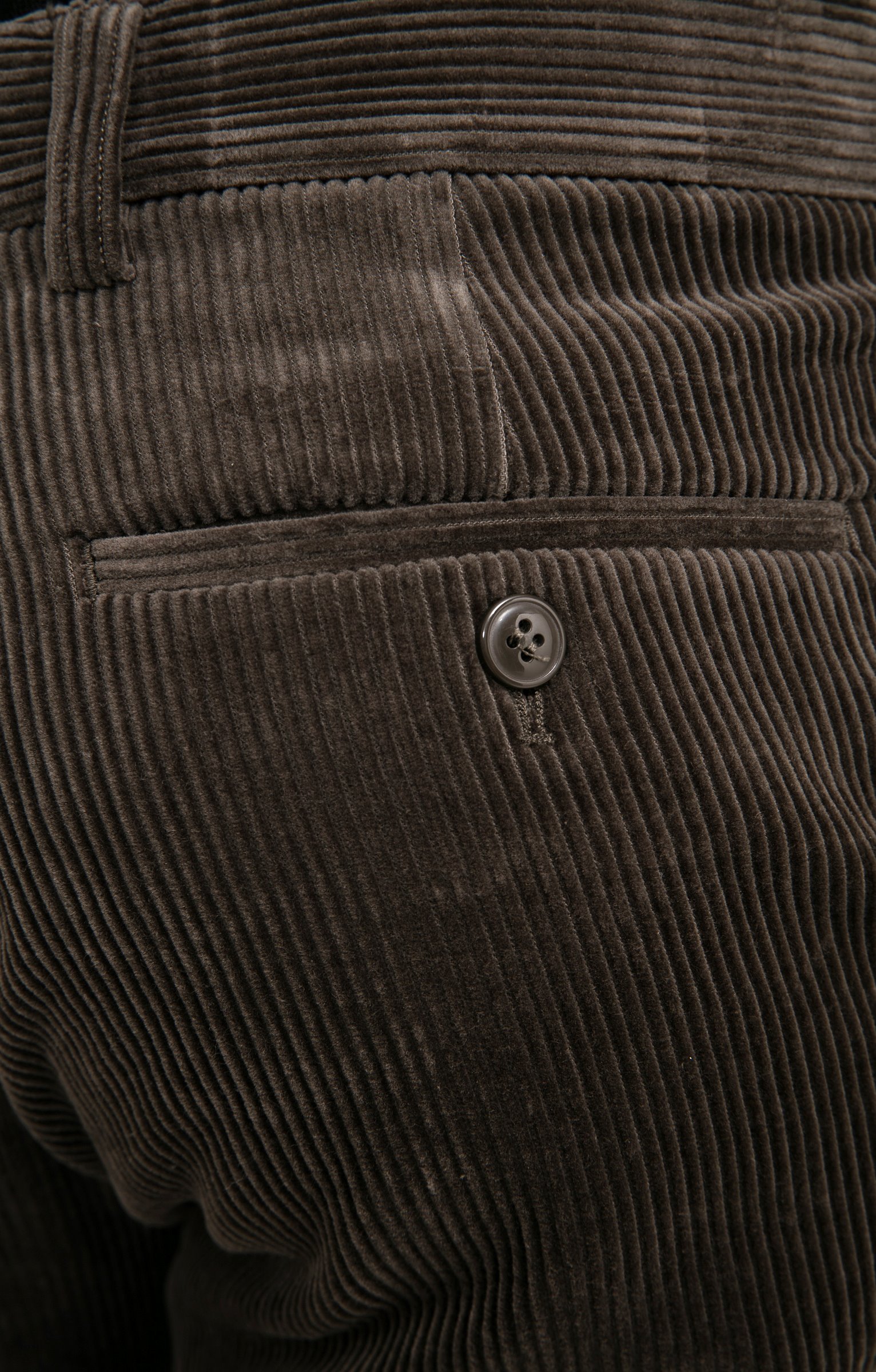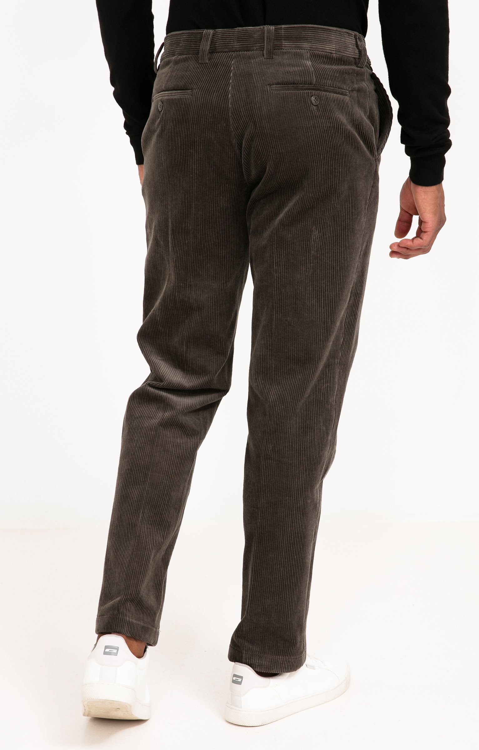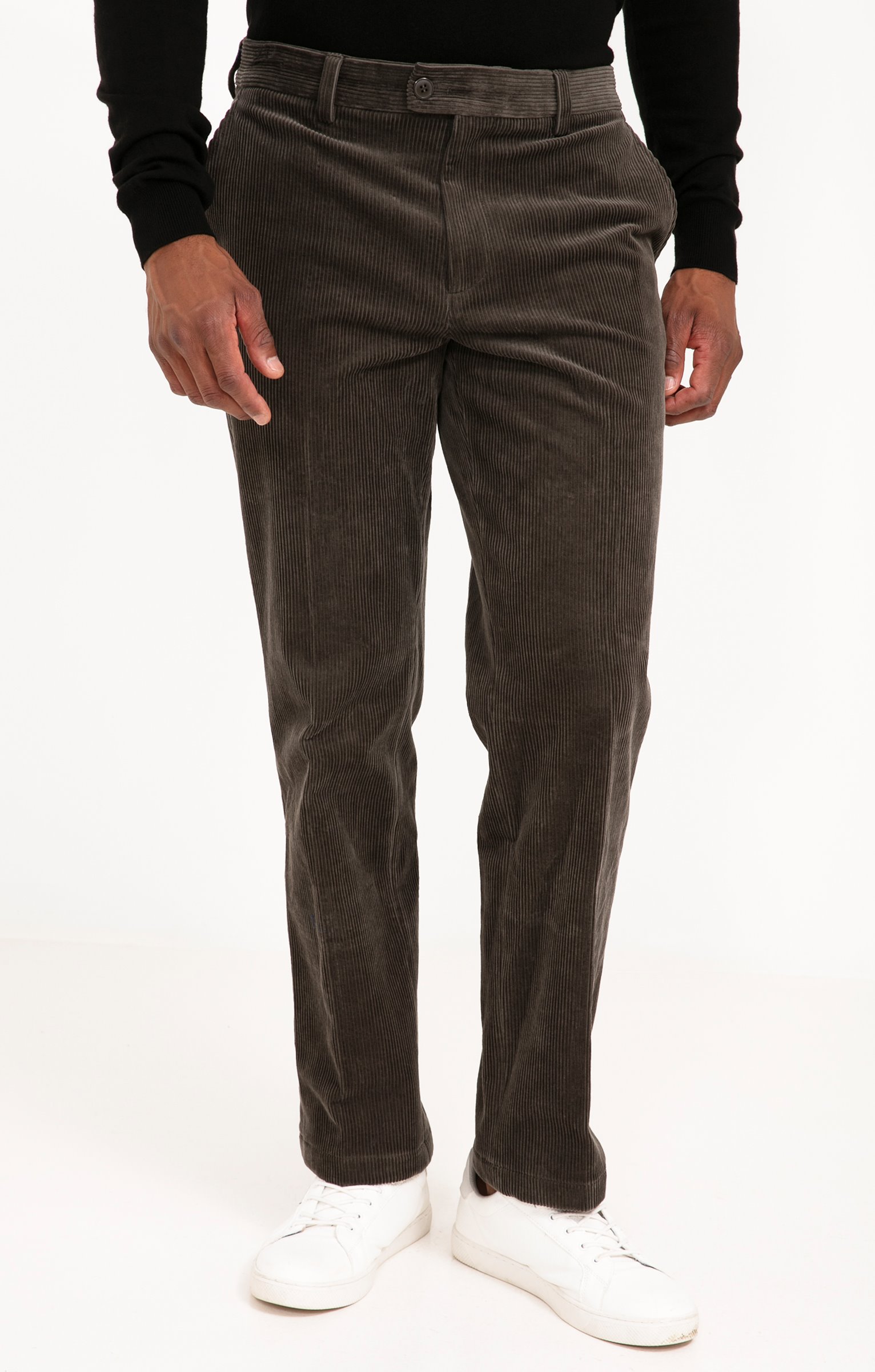 Pantalon confort en velours côtelé extensible et uni. Coupe confort. Fermeture à bouton fantaisie ton sur ton décentré et zip. 2 poches italiennes devant et 2 poches passepoilées boutonnées au dos. Coloris uni. Velours extensible milleraies. Passants à la taille. Pinces d'ajustement au-dessus des poches au dos.
