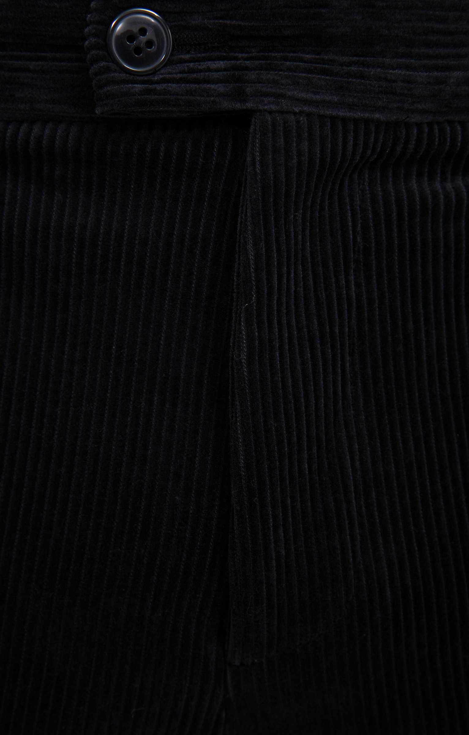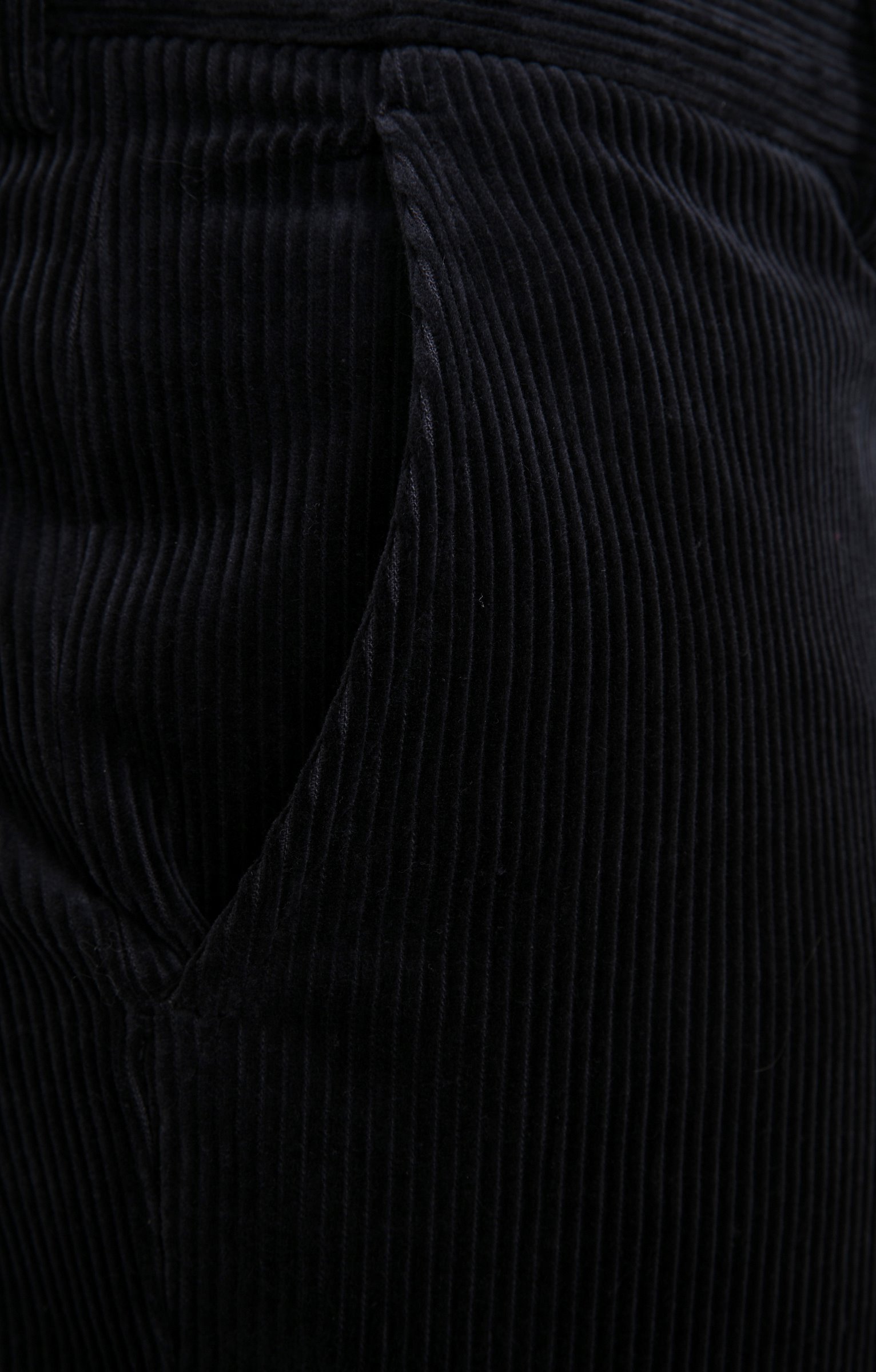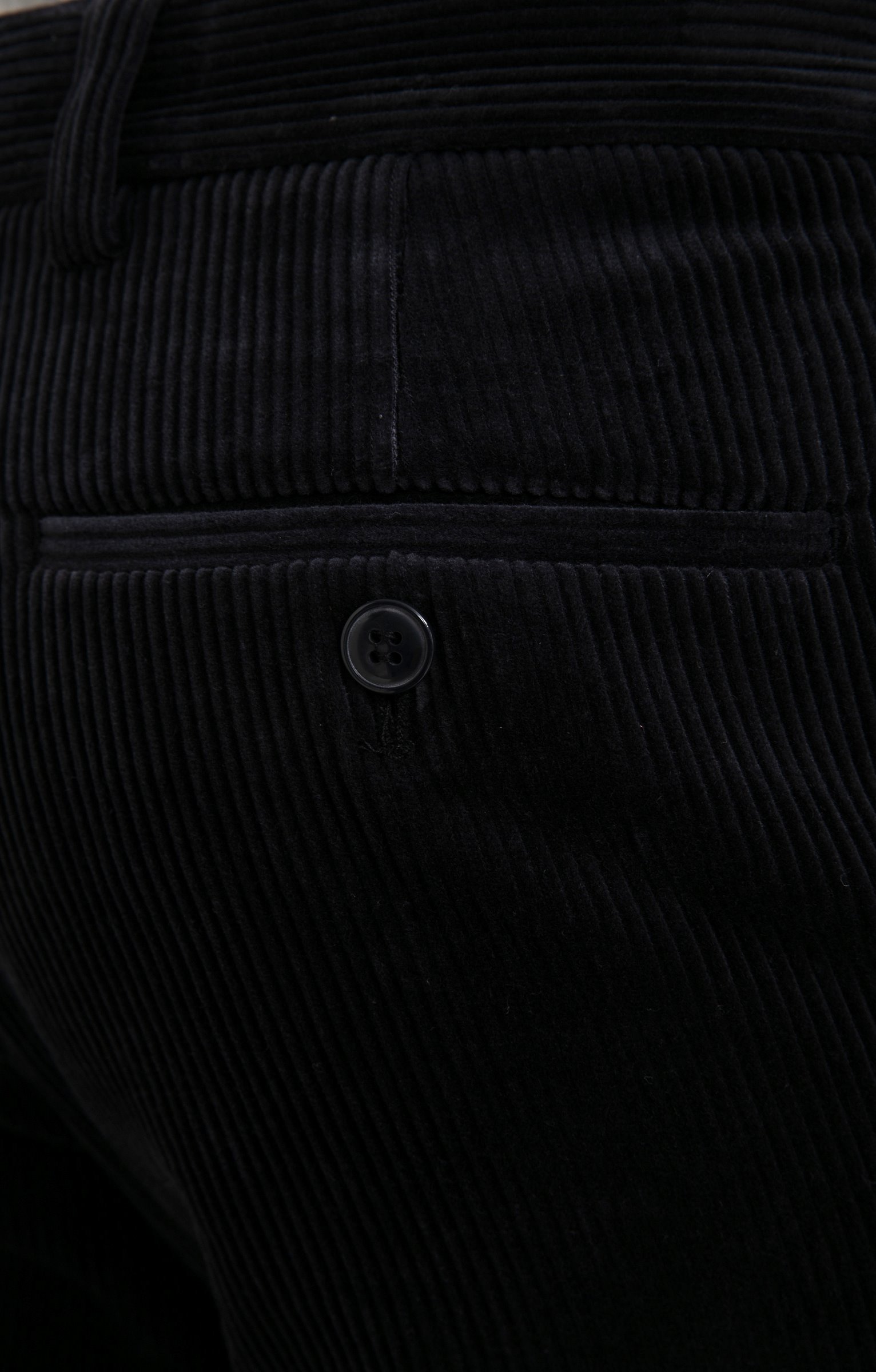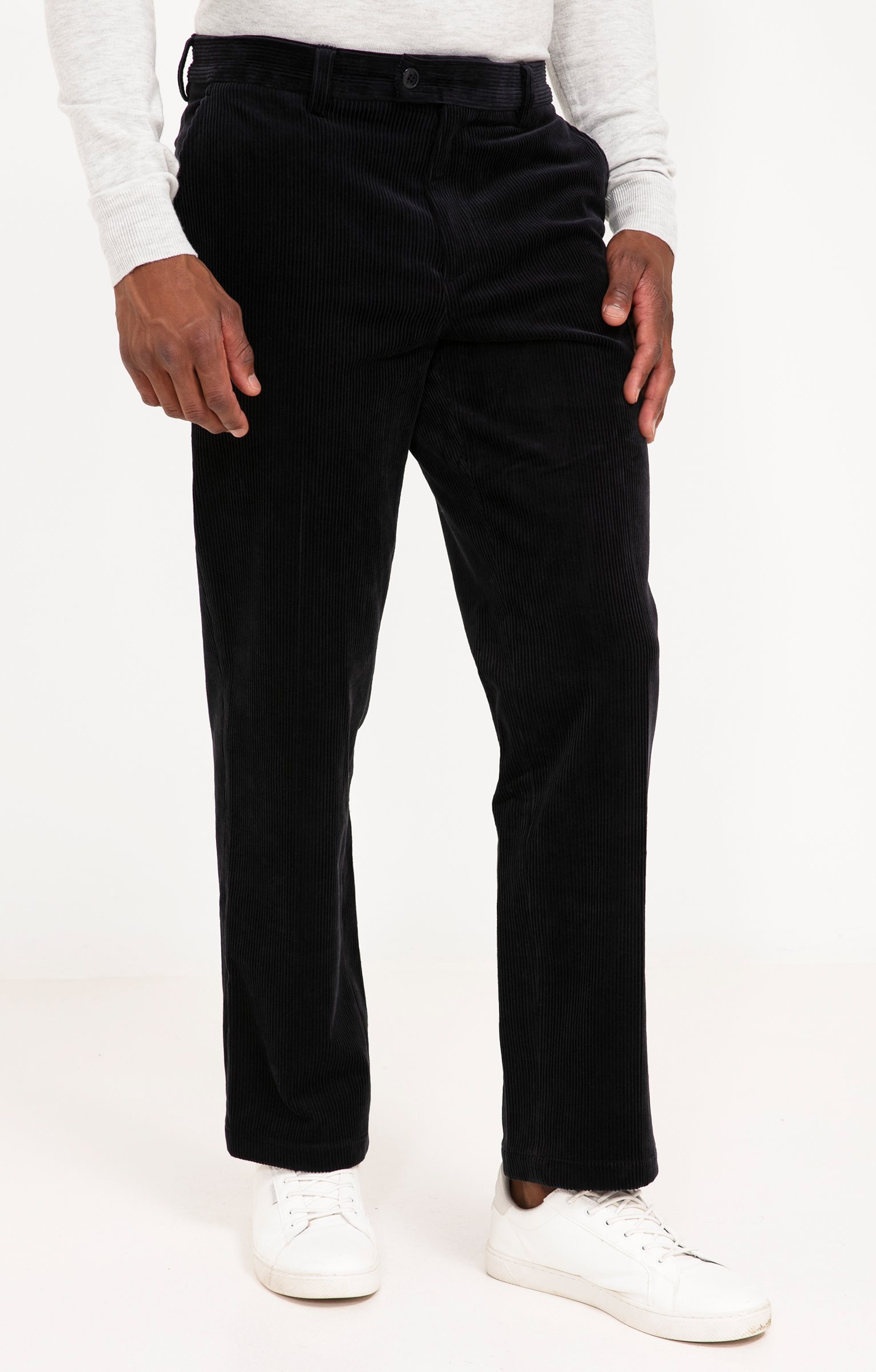 Pantalon confort en velours côtelé extensible et uni. Coupe confort. Fermeture à bouton fantaisie ton sur ton décentré et zip. 2 poches italiennes devant et 2 poches passepoilées boutonnées au dos. Coloris uni. Velours extensible milleraies. Passants à la taille. Pinces d'ajustement au-dessus des poches au dos.