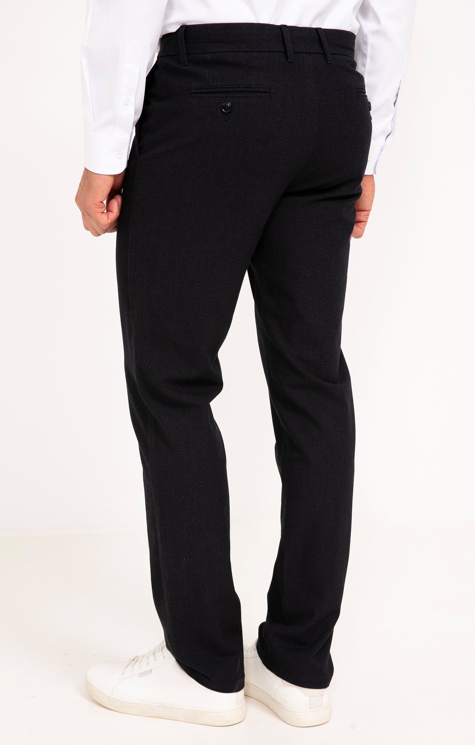 Pantalon chino slack uni. Coupe regular. Fermeture par zip recouvert et bouton. 2 poches italiennes devant et 2 poches passepoilées boutonnées au dos. 5 passants pour ceinture. Tissu à texture discrète.