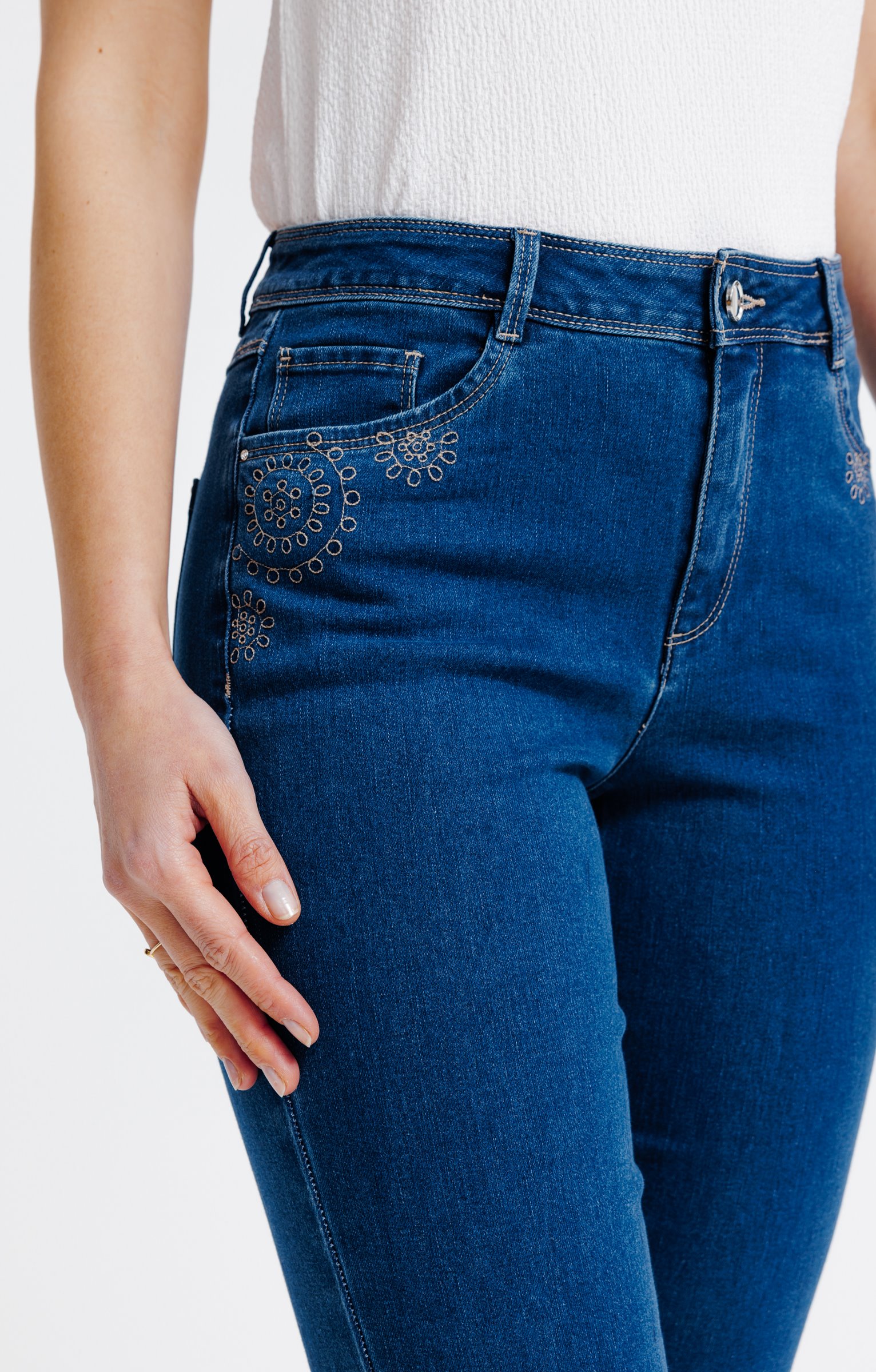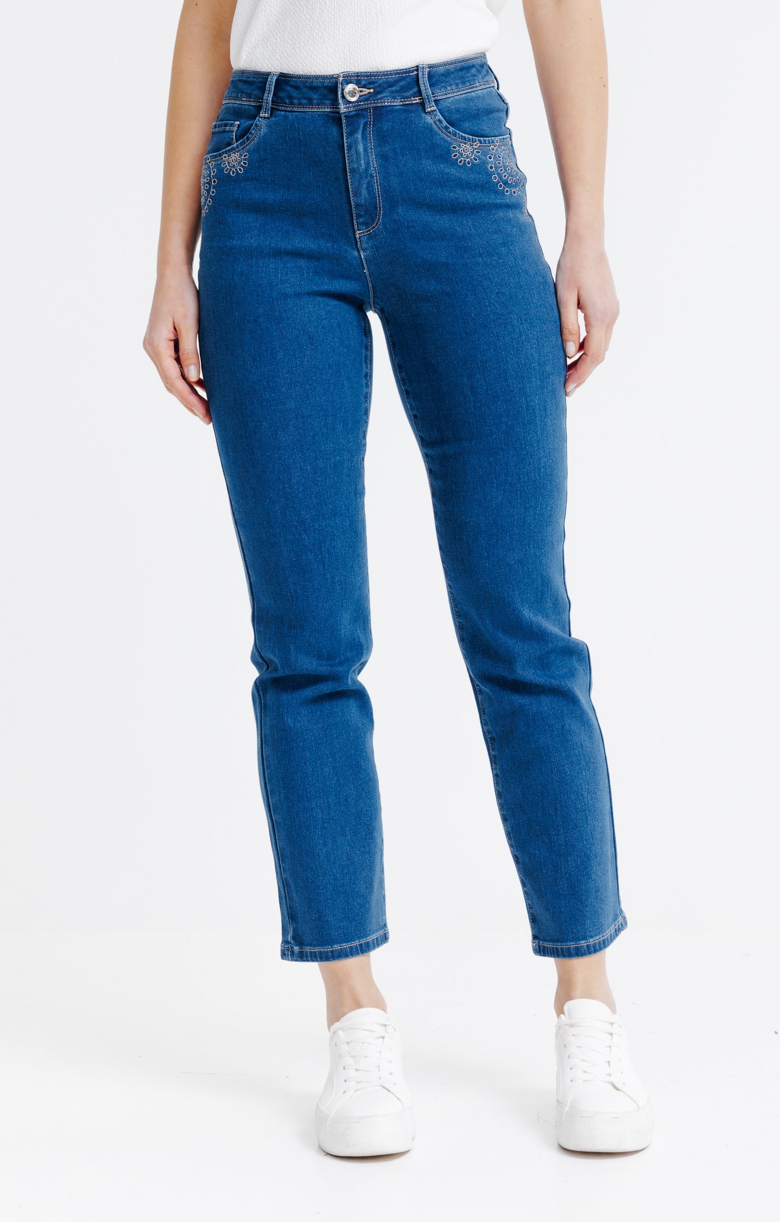 Pantacourt denim coupe droite, broderie -