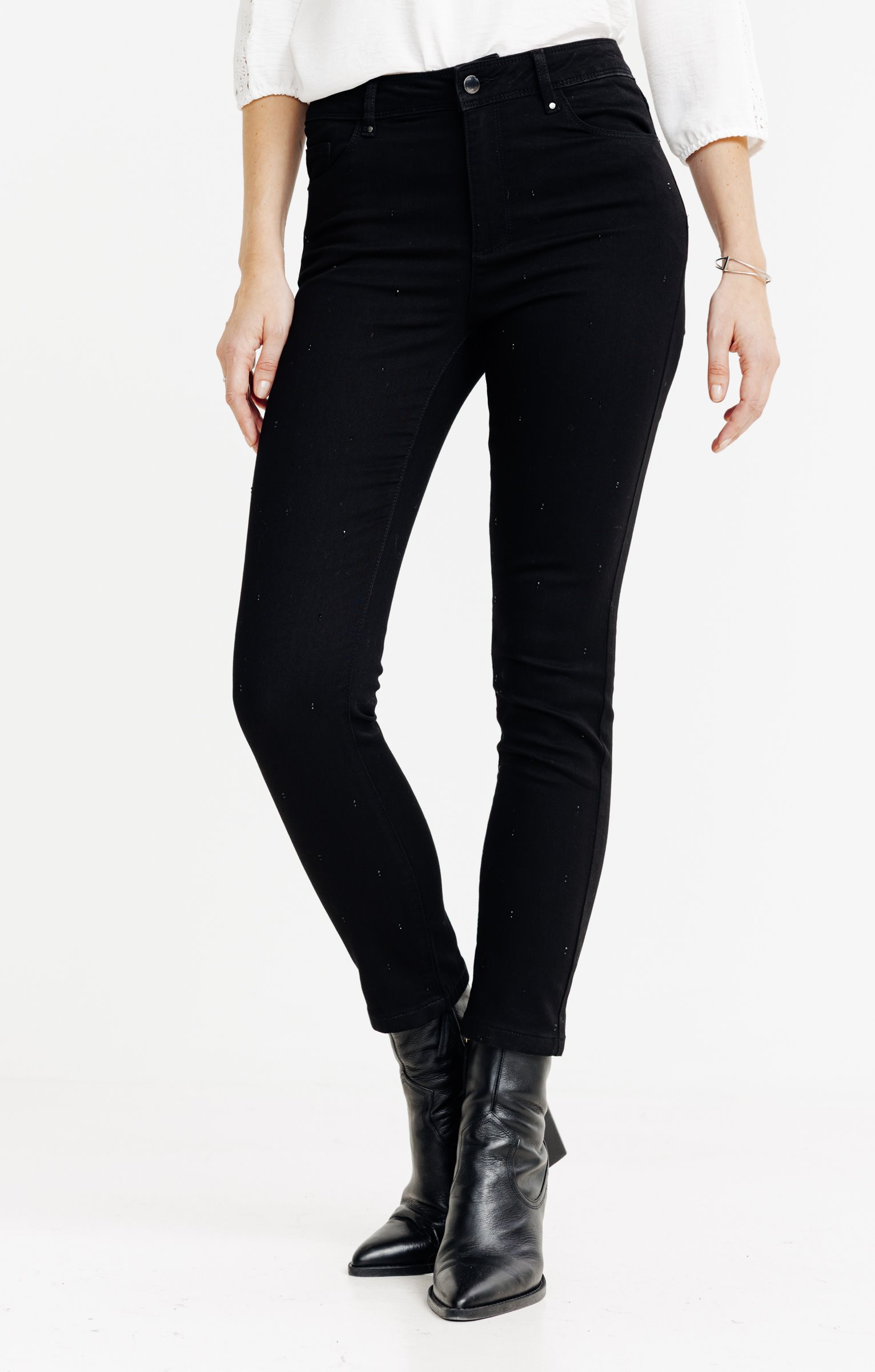 Pantalon satin stretch à strass -