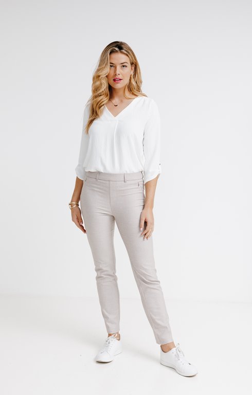Pantalon de ville à carreaux. Coupe ajustée. Tregging avec fausse fermeture sous bord. Large ceinture élastiquée. 2 fausses poches zippées devant. 2 poches passepoilées au dos. Tregging à carreaux. Tissu en maille chaude légèrement extensible. Passants pour ceinture. Détails strass sur les poches au dos et les passants devant. Notre mannequin Frédérique mesure 1m78 et porte un pantalon taille 36.