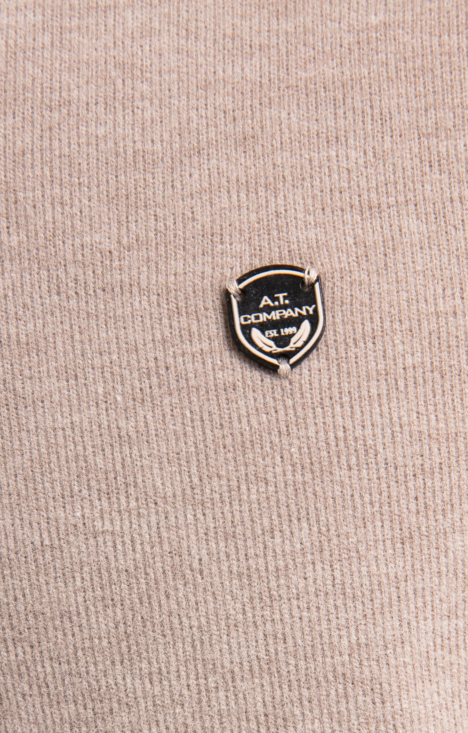 Polo fin avec col fantaisie. Coupe droite. Manches longues à emmanchures droites. Col polo avec pointes boutonnées, fermé par des boutons bicolores. Fine maille unie. Motifs fantaisie à l'intérieur de la patte boutonnée et sur le bord supérieur. Écusson métallique sur la poitrine. Finitions bords-côtes à la base et aux poignets.