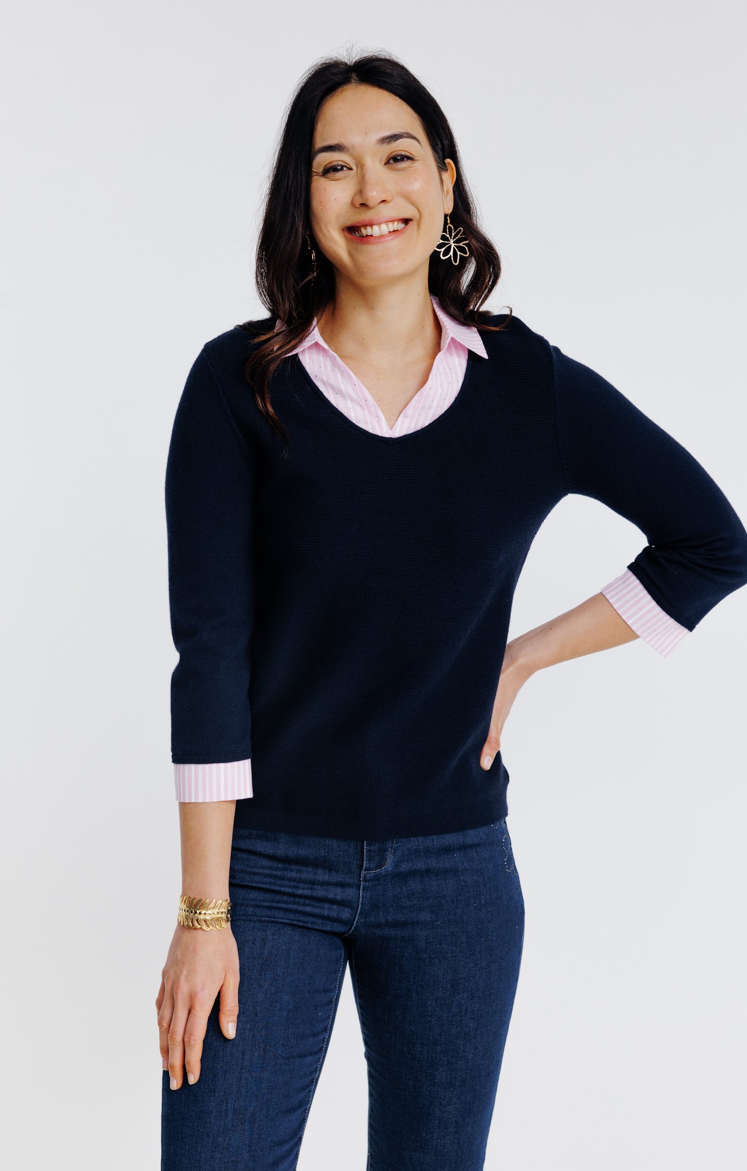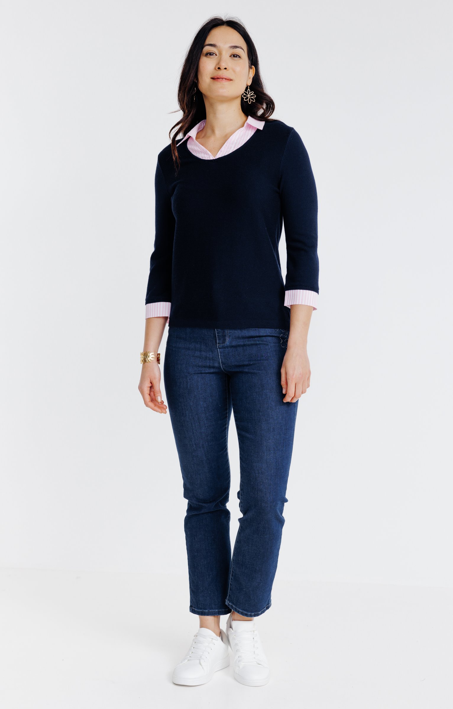 Tee-shirt jacquard manches 3/4