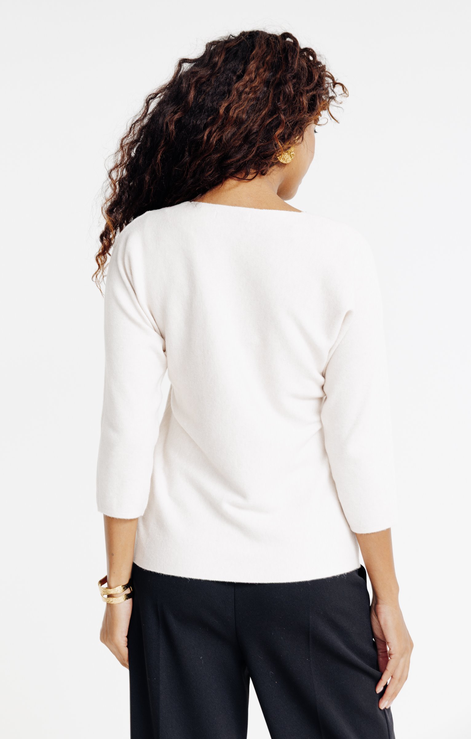 Notre mannequin Juliana mesure 1m79 et porte un pull taille 1."