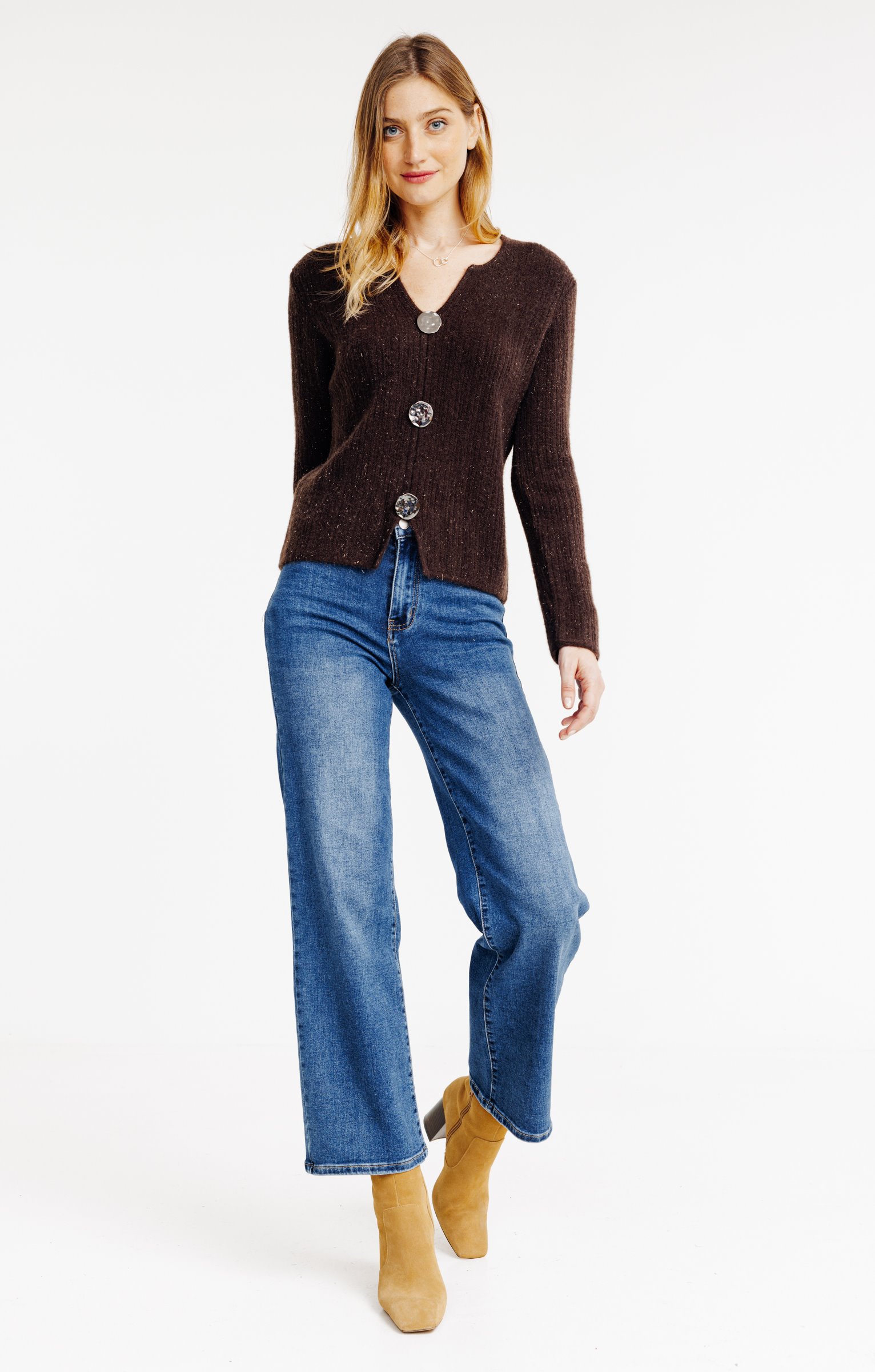 Cardigan col v avec boutons noeuds