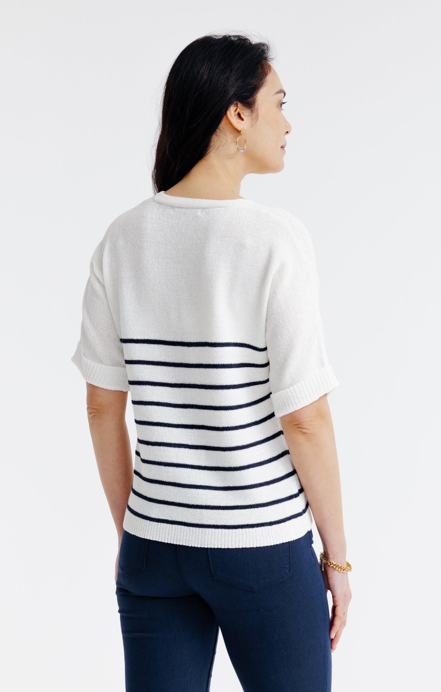 Pull rayé avec bouton coeur -
