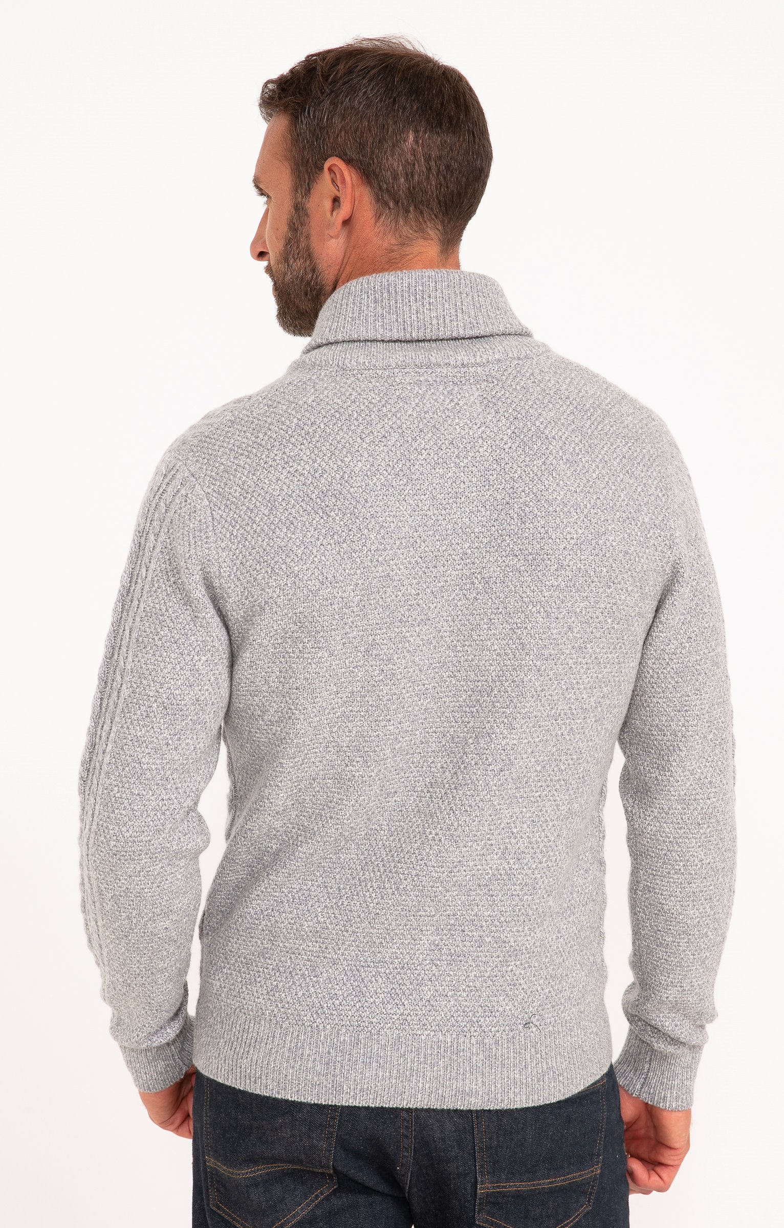 Notre mannequin Nicolas mesure 1m87 et porte un pull taille M.