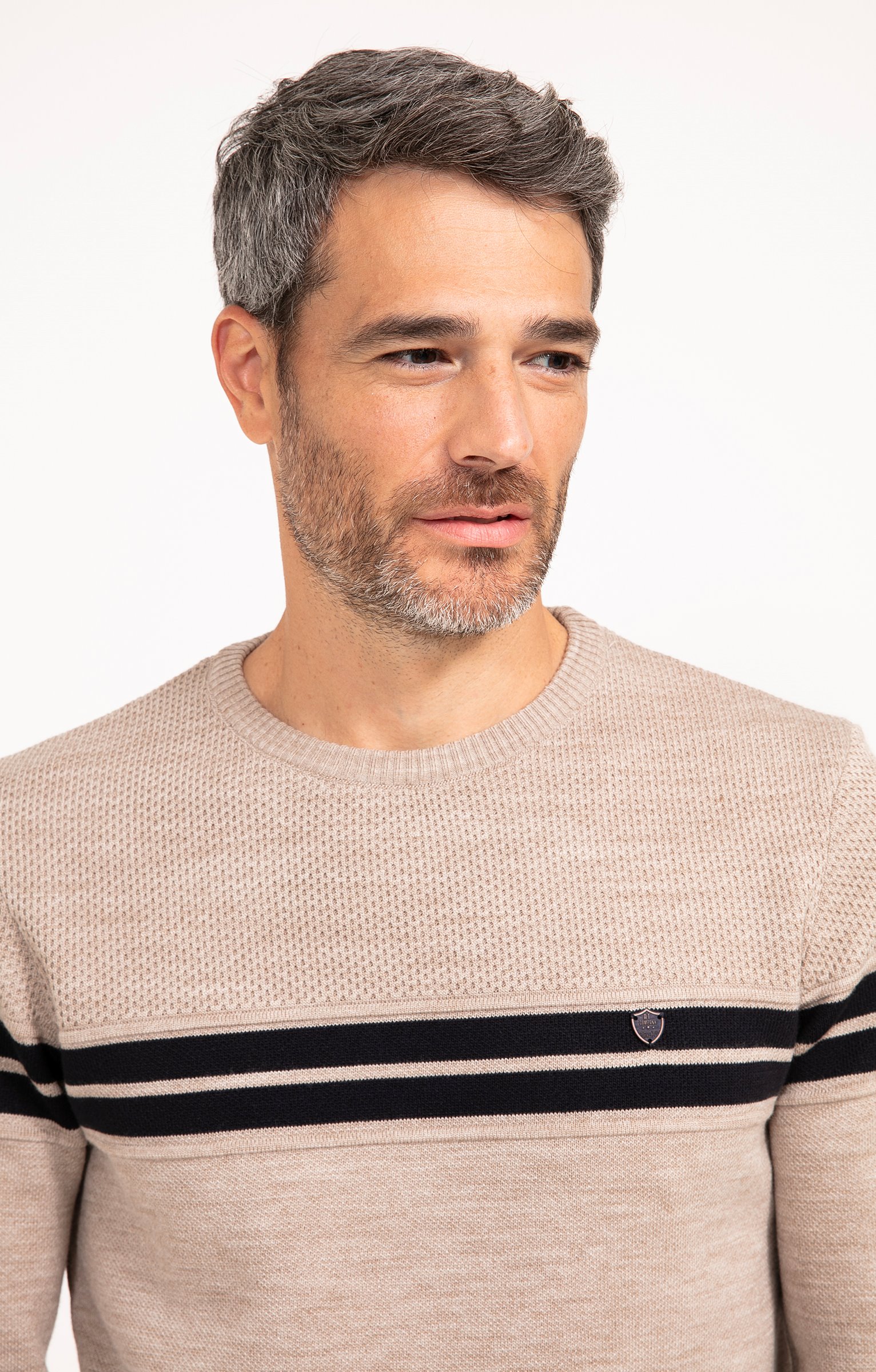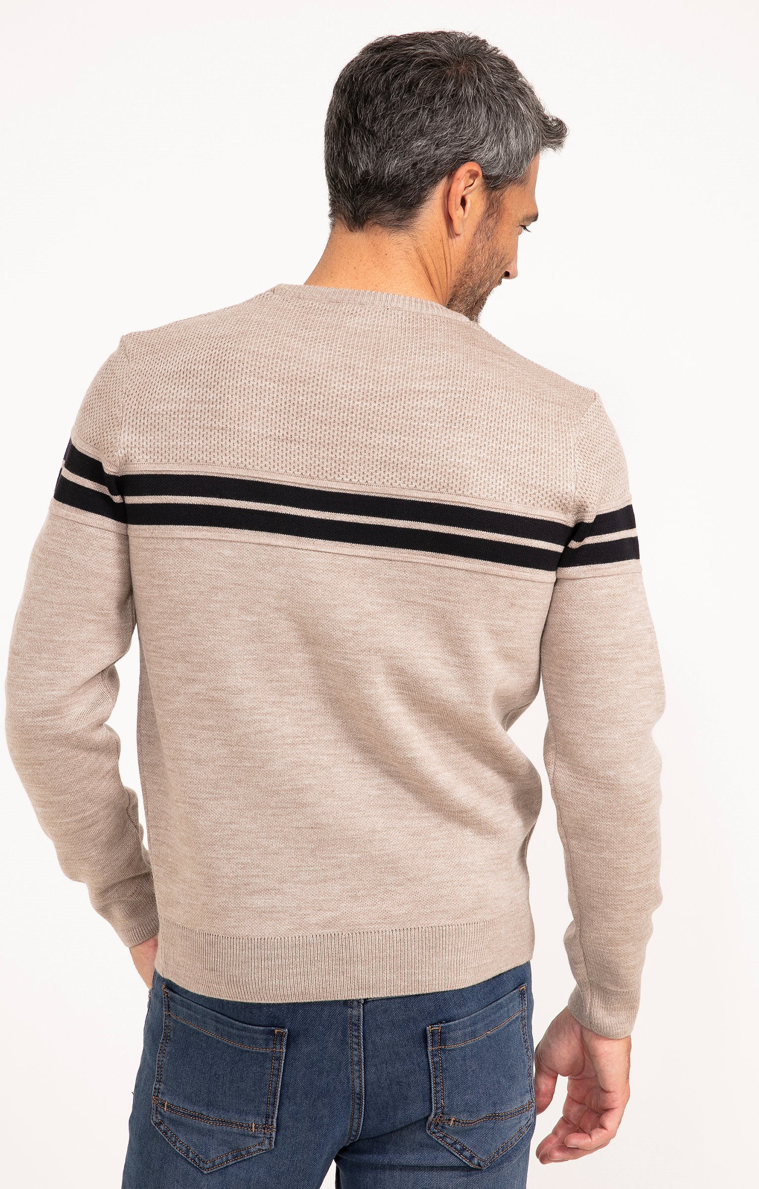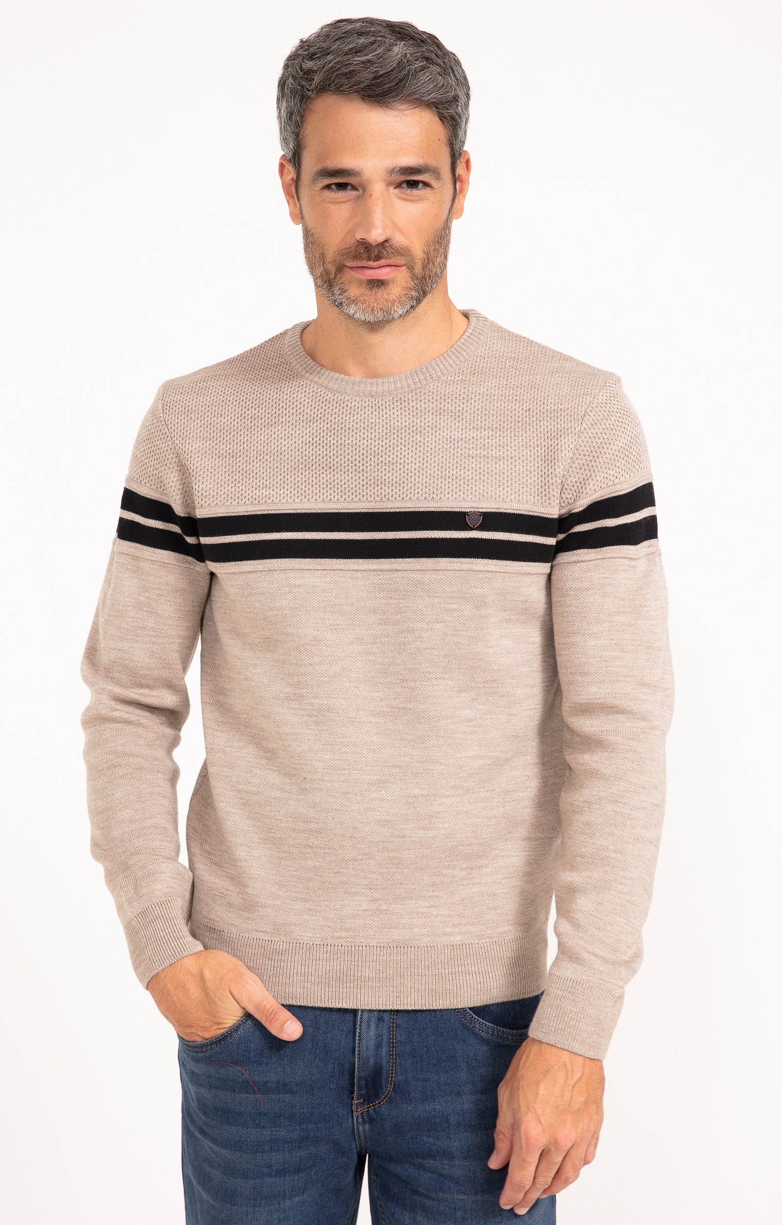 Pull col rond rayé Miel -