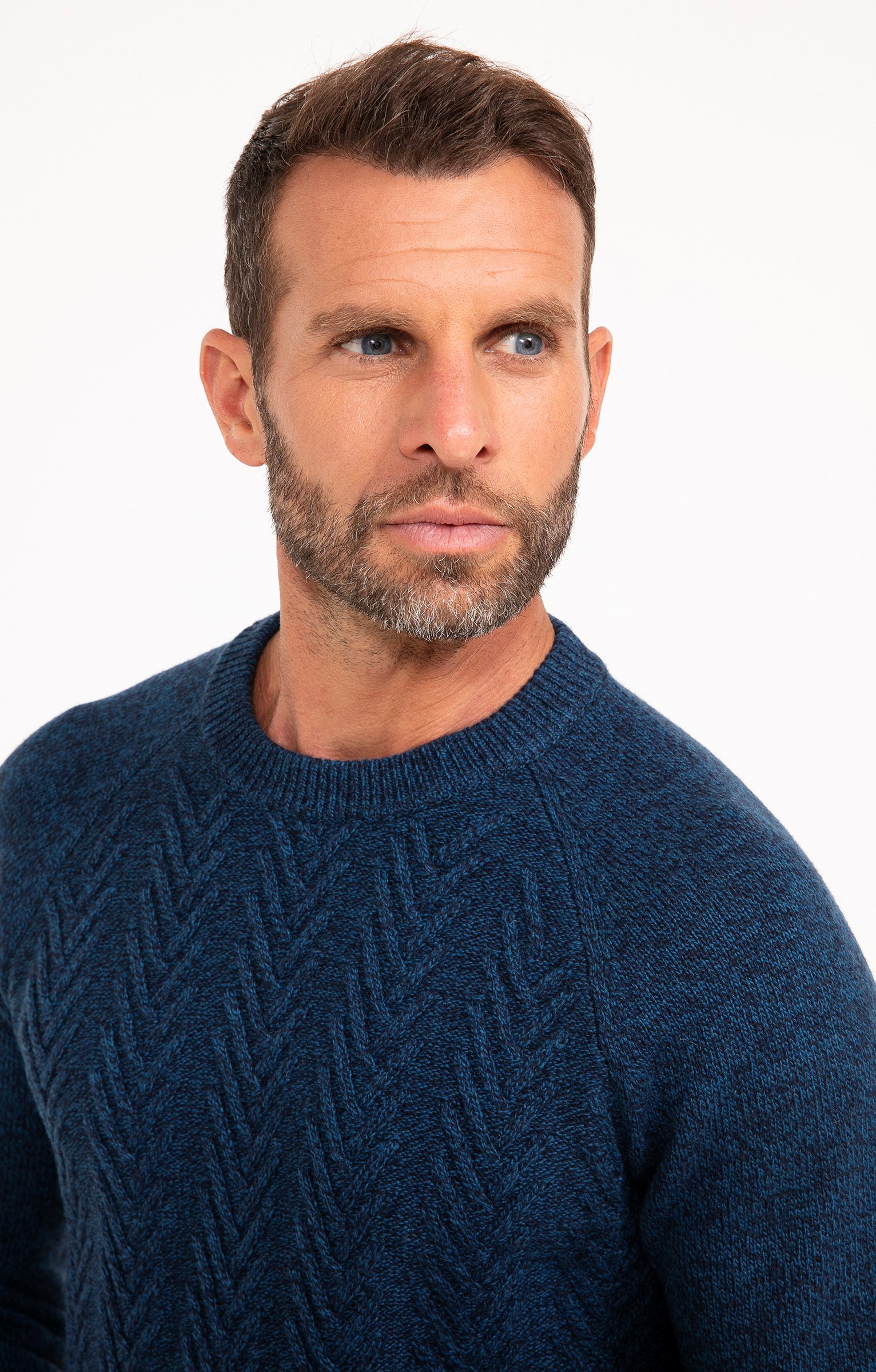 Notre mannequin Nicolas mesure 1m87 et porte un pull taille M.