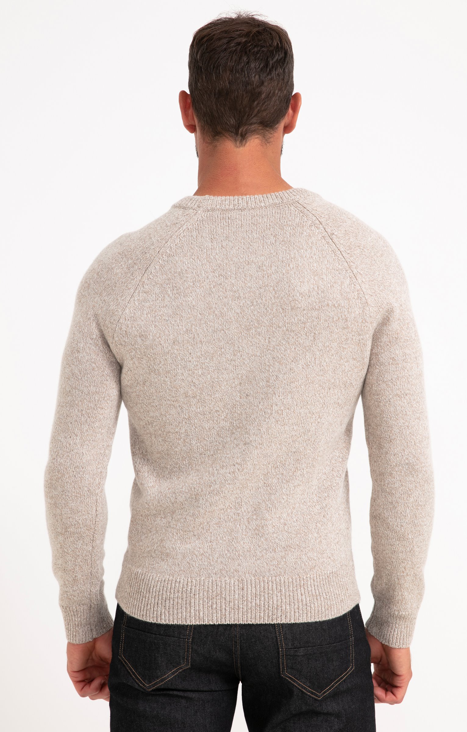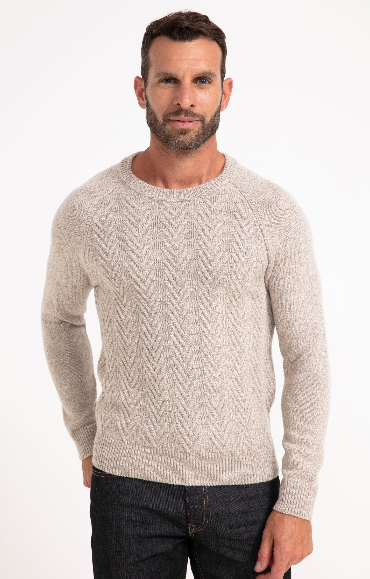 Pull en maille unie torsadée à manches longues et col rond. Coupe droite. Manches longues avec emmanchures raglan. Col rond aux bordures côtelées. Coloris uni. Tissu en maille chaude aspect chiné. Maille torsadée devant. Larges bord-côtes en finition de la base et des poignets. Composition contenant de la laine.