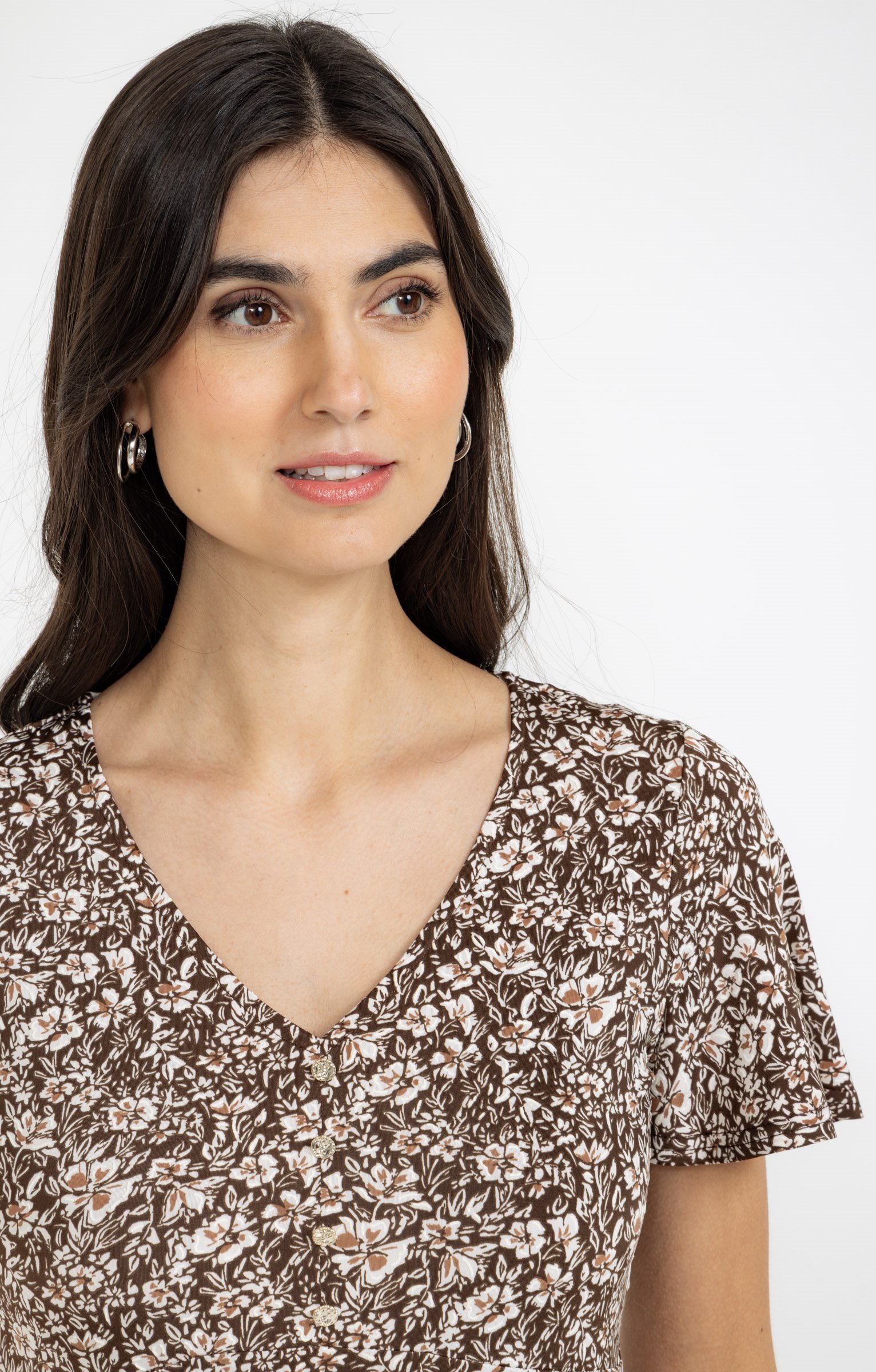 Tee-shirt avec plis imprimé feuillage