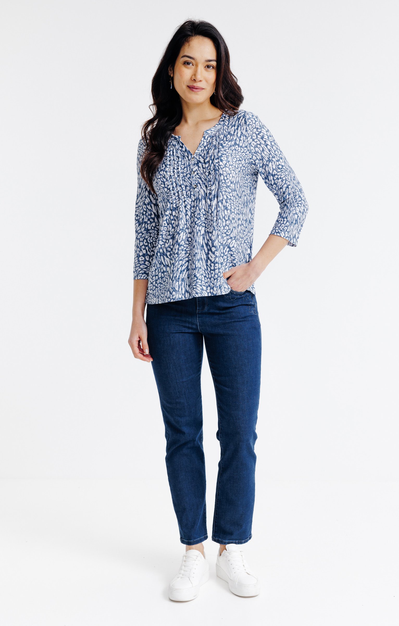 T-SHIRT COL MAO AVEC PLIS IMPRIME -