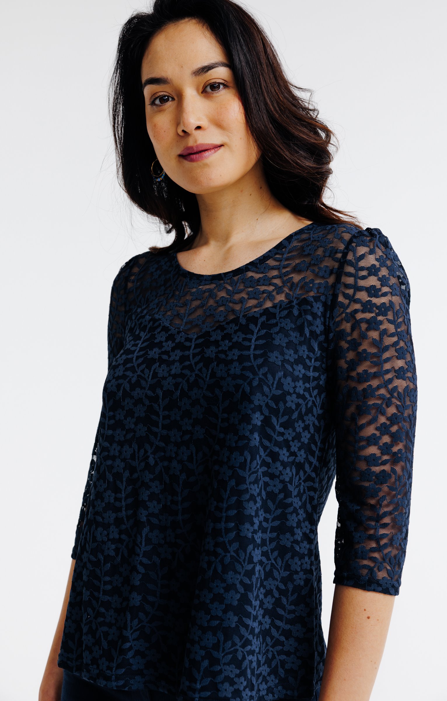 Tee-shirt dentelle manches 3/4 -