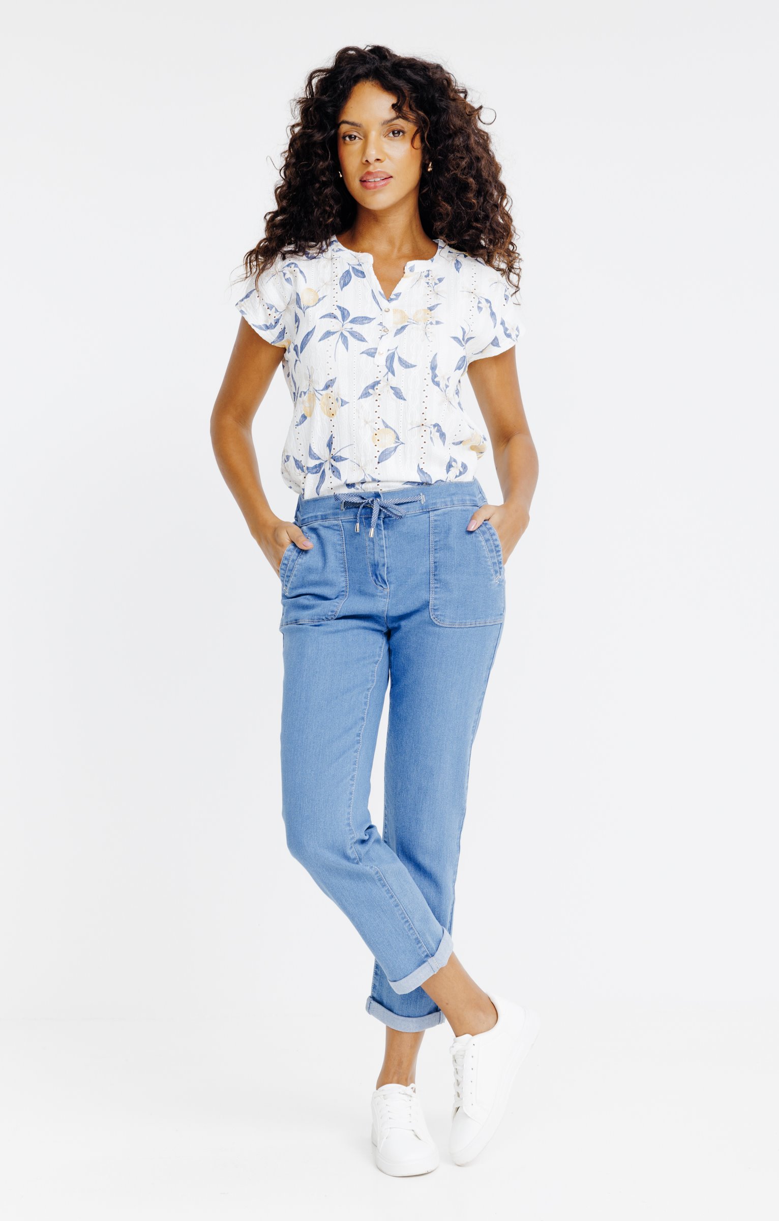 Pantacourt en denim détails fantaisies